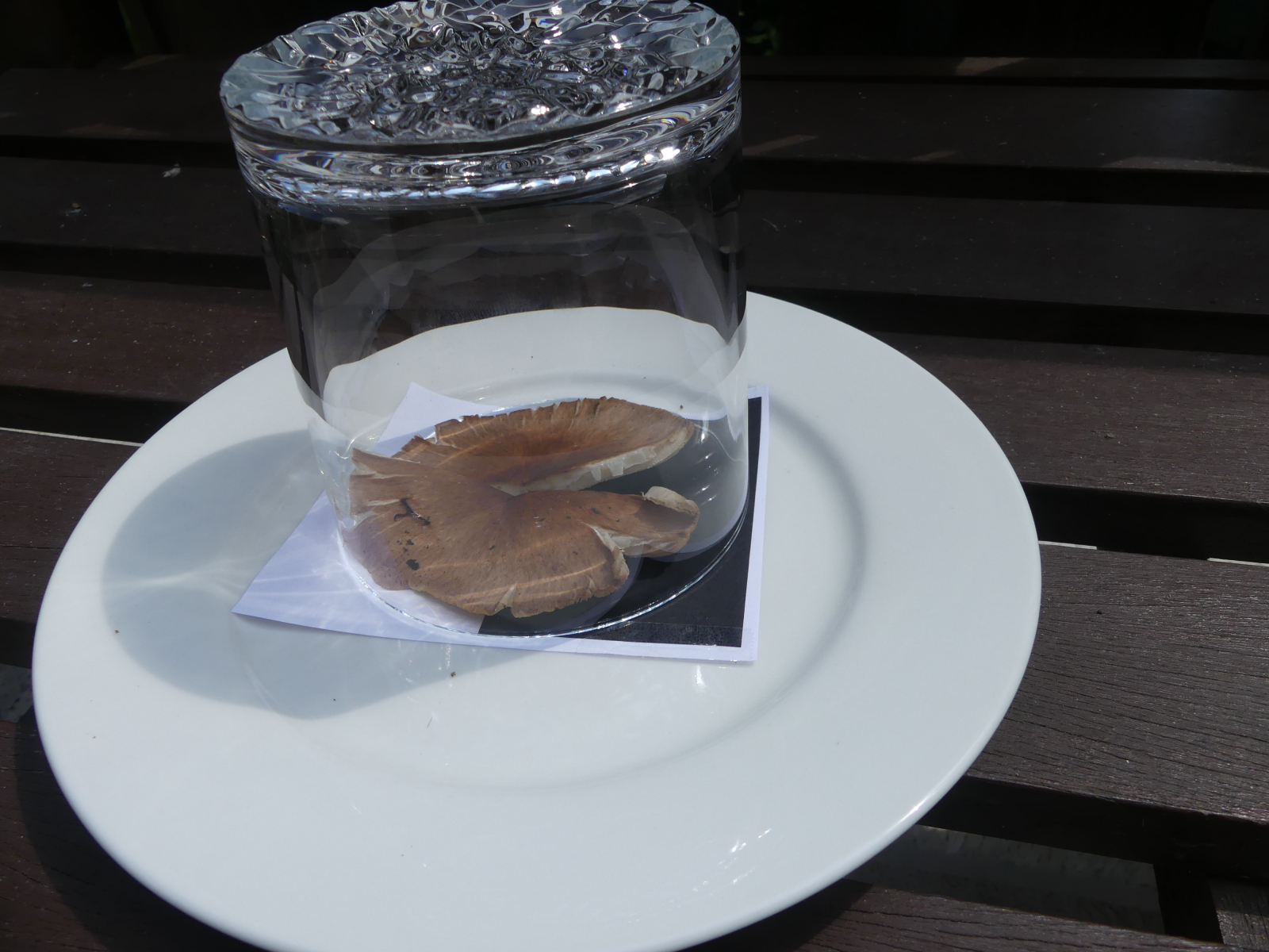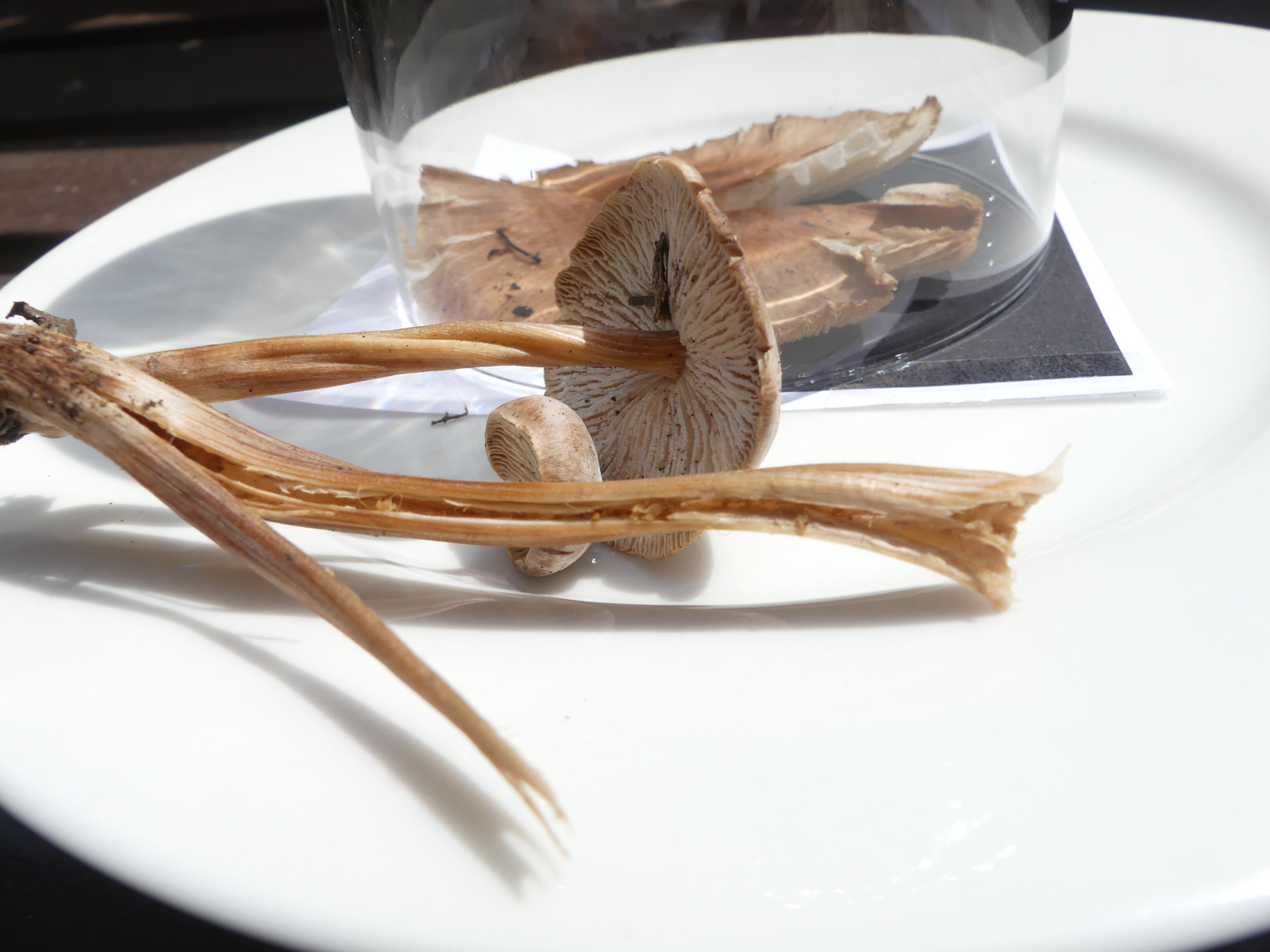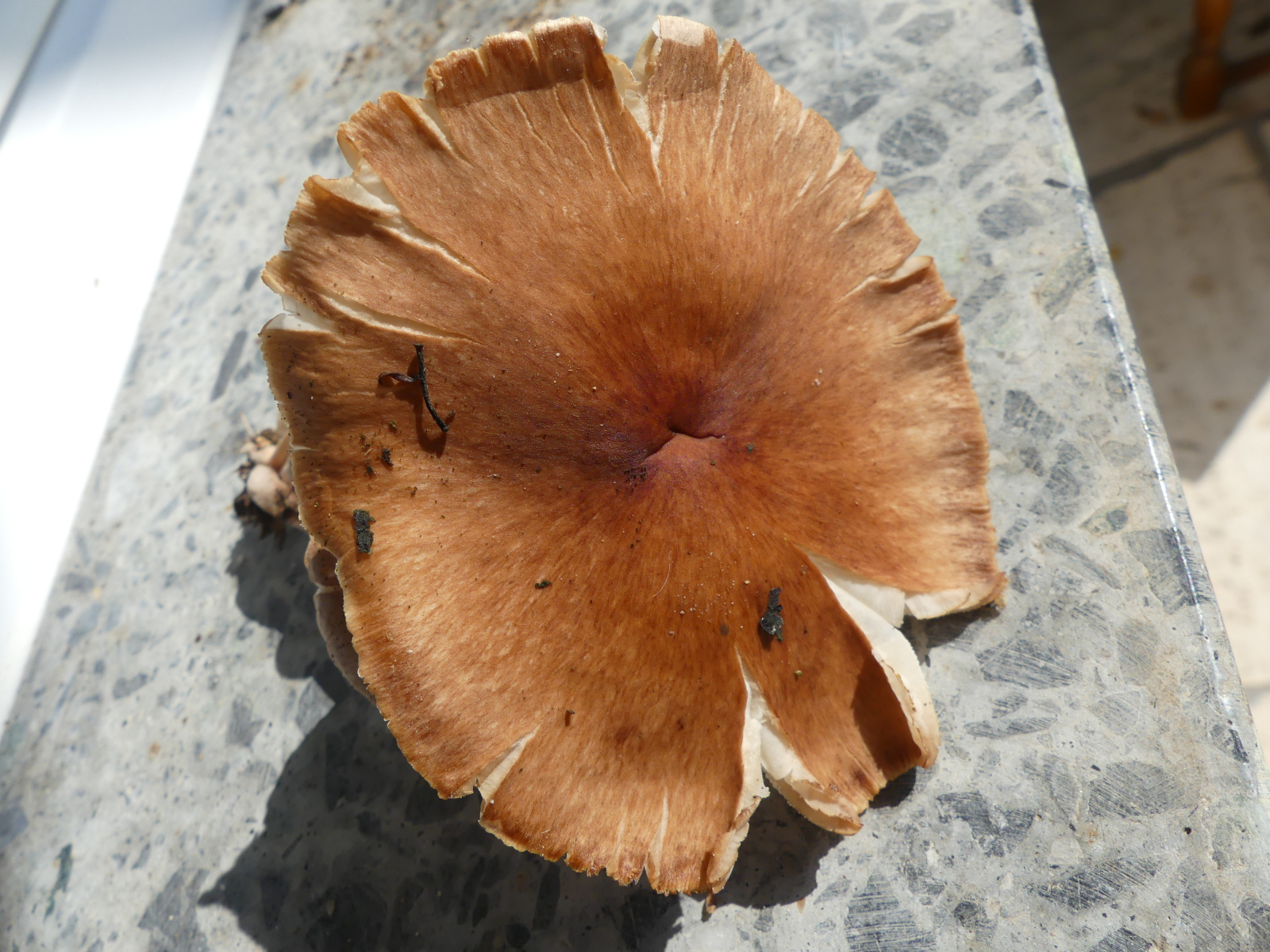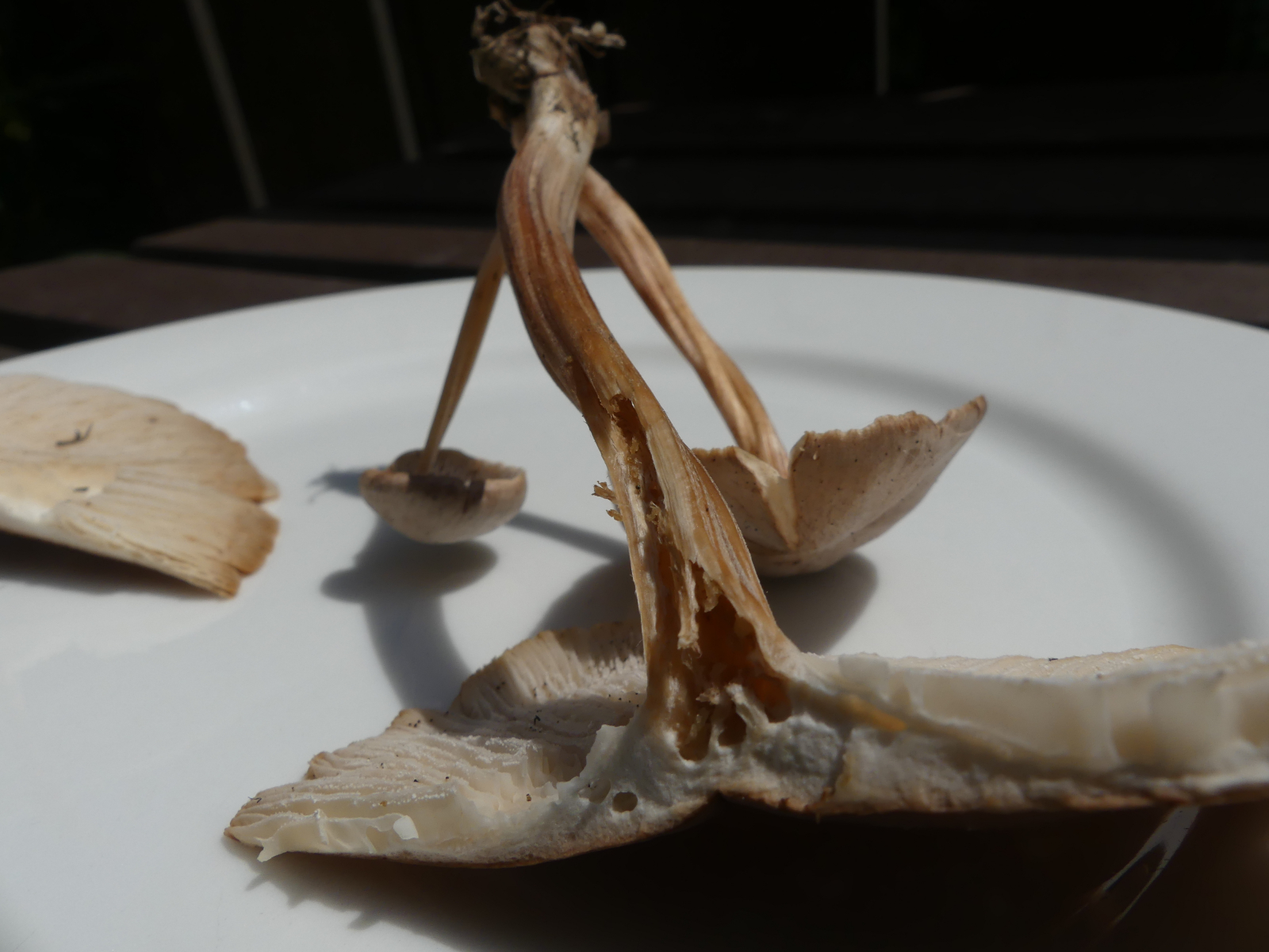 Der Hutdurchmesser des größten Exemplares beträgt etwa 8 cm. Geruch schwach ausgeprägt, angenehm, etwas mehlartig (nicht so wie beim Maipilz). Geschmacksprobe habe ich mir verkniffen. Schnittbilder oder Sporenabwurf kann ich bei Bedarf anfertigen, die drei Exemplare habe ich eingetütet in den Kühlschrank verfrachtet.