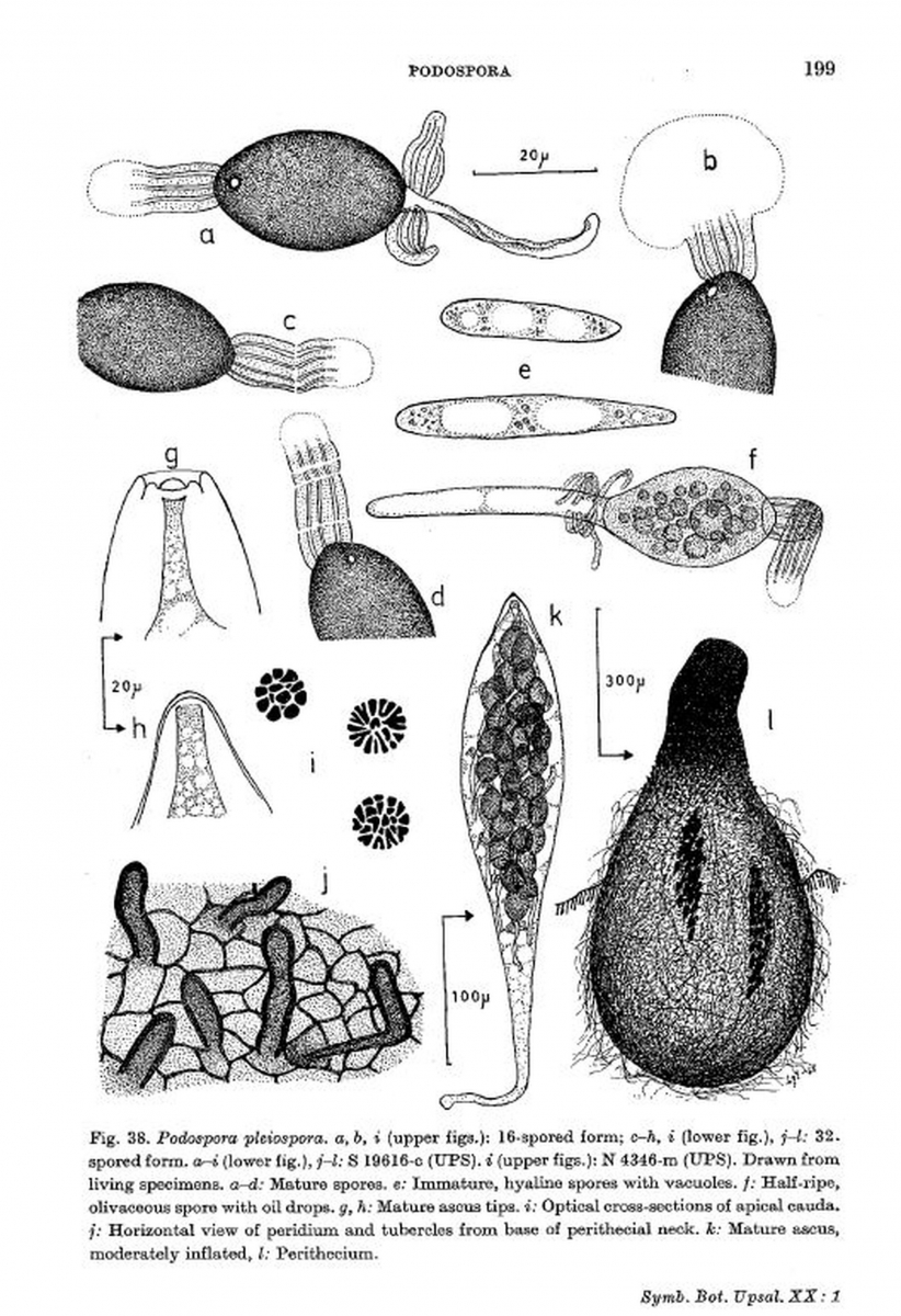 die Podospora hab ich von Wildkaninchen, der Dung liegt schon eine weile im Döschen. ich erde aus dem Ding nicht schlau, hat jemand eine Idee? Sporen sind ca. 34x16µm