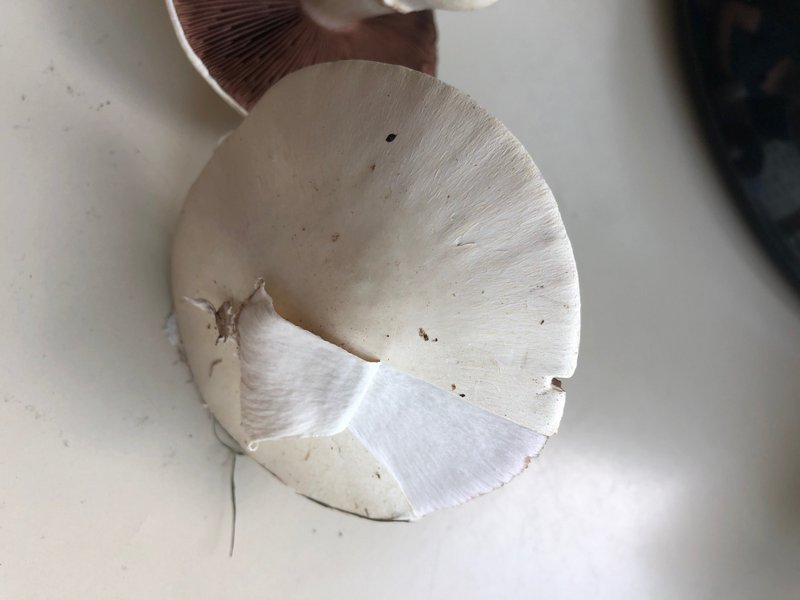 ich habe Champignons auf einer ab und zu künstlich bewässerten Wiese gefunden. Da ich mich an Champignons bisher gar nicht rantraue, möchte ich gern eine Bestimmung zu Lernzwecken. Ein Verzehr ist definitiv nicht geplant! (Sind ja auch schon ein bisschen alt.)
