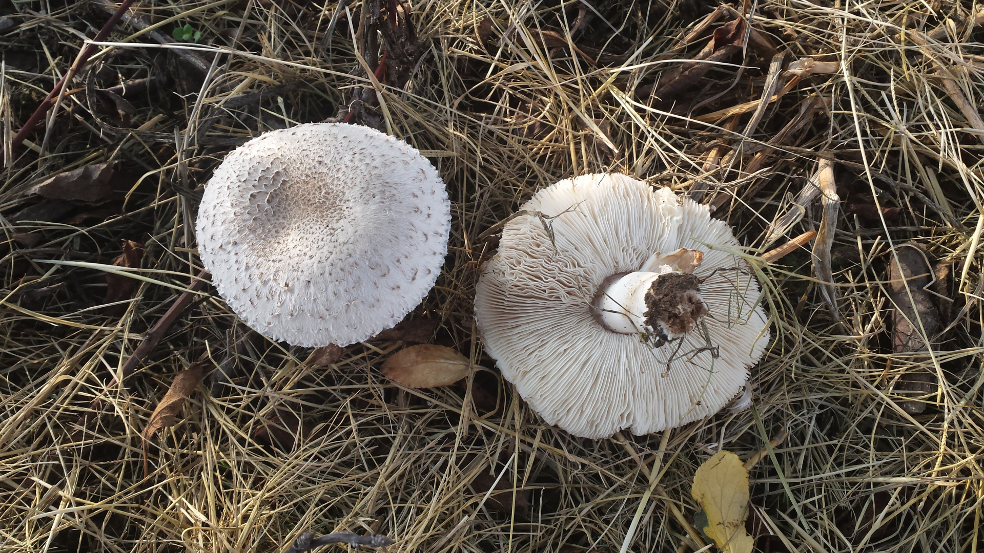 haltet mal die Augen nach dem Wurzelnden Egerlingsschirmling, Leucoagaricus barsii, auf. Ich hab den heute grad wieder gefunden, an den gleichen Stellen, wie ich es im Tintling 1/2016 beschreiben hatte. Da heute nacht hier ganz ordentlich was runterkam, erwarte ich weitere Fruktifikation. Wäre interessant zu wissen, ob der sonst noch weiter kommt, vor allem hier im Rhein-Main-Gebiet oder anderen Trockengebieten. Ich bin der Meinung, das ist ein Steppenpilz, der die Kombination heiße, trockene Zeit und kräftige Regengüsse zum fruktifizieren braucht.