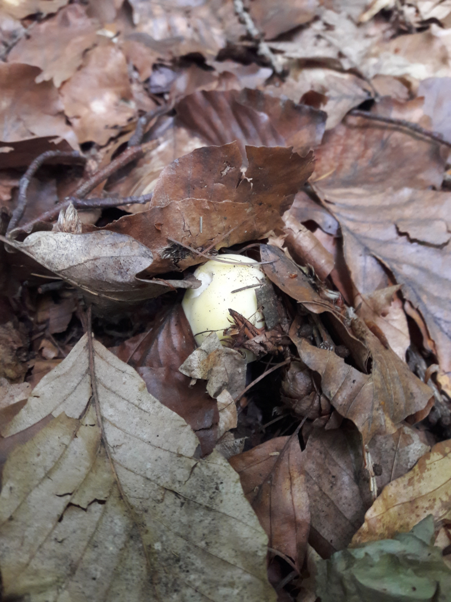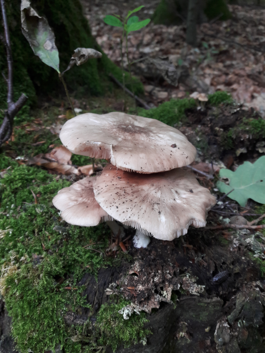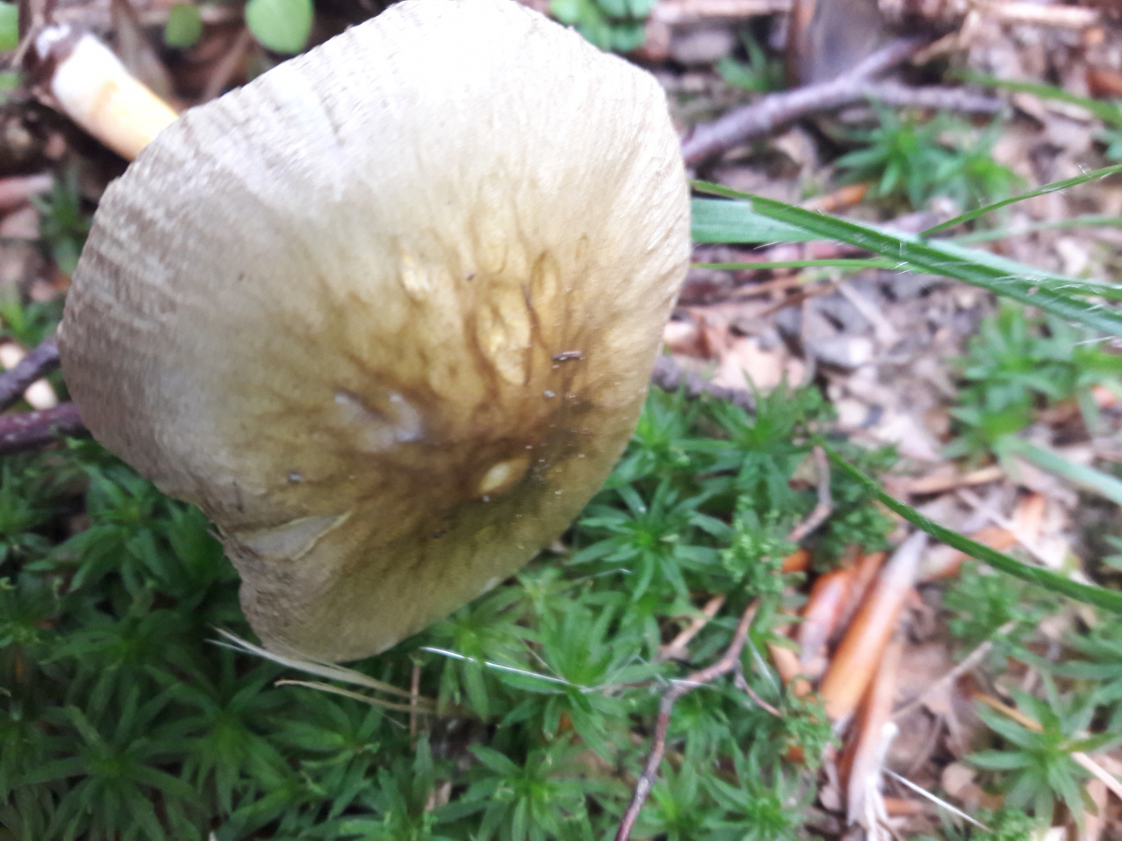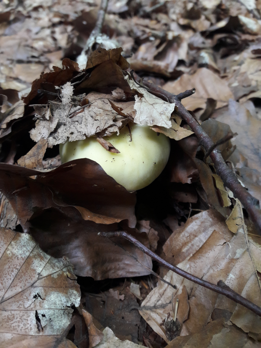 6. Hier vermute ich den Fleischroten Speisetäubling (Russla vesca). Mir erschien es so, als reichte die Huthaut nicht ganz über die Lamellen