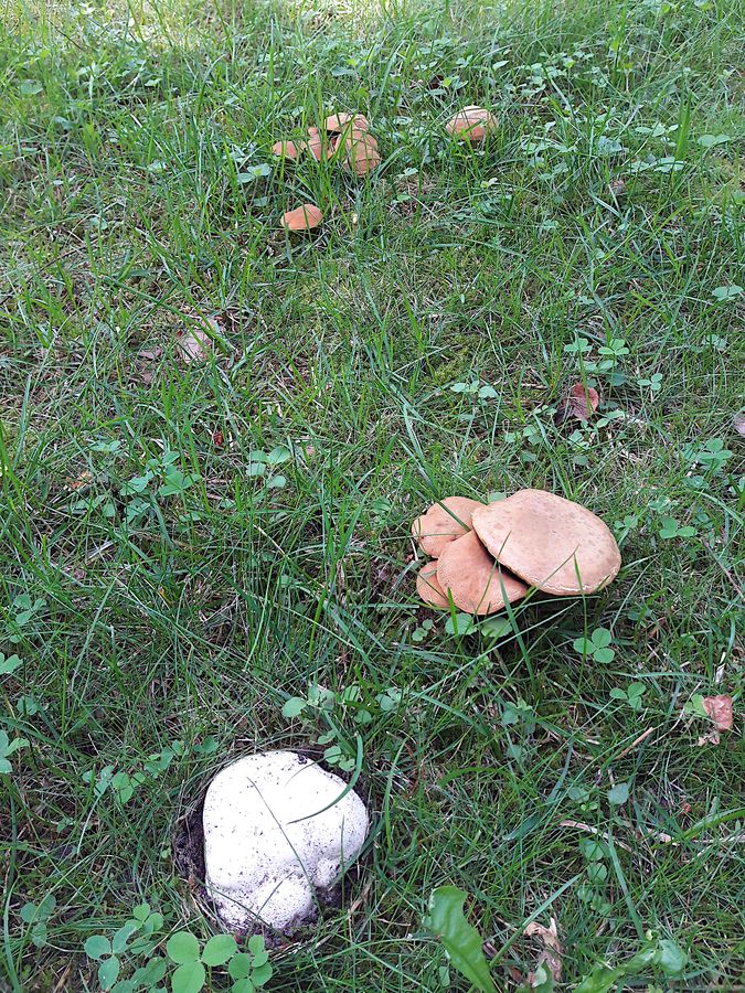 Erstes Ziel war nach sorgfältiger Konsultation der Niederschlagsmengen der Schlosspark Buch, wo sich Risspilze, Filzröhrlinge und Täublinge tummelten. Auch Milchlinge, Champignons (eindeutig aus der Karbol-Gruppe), Nelkenschwindlinge sowie Perlpilze (madig) ließen sich vereinzelt blicken, außerdem ein weiteres Exemplar des Waben-Stielporlings, der in Berlin und Brandenburg noch gänzlich unkartiert ist.