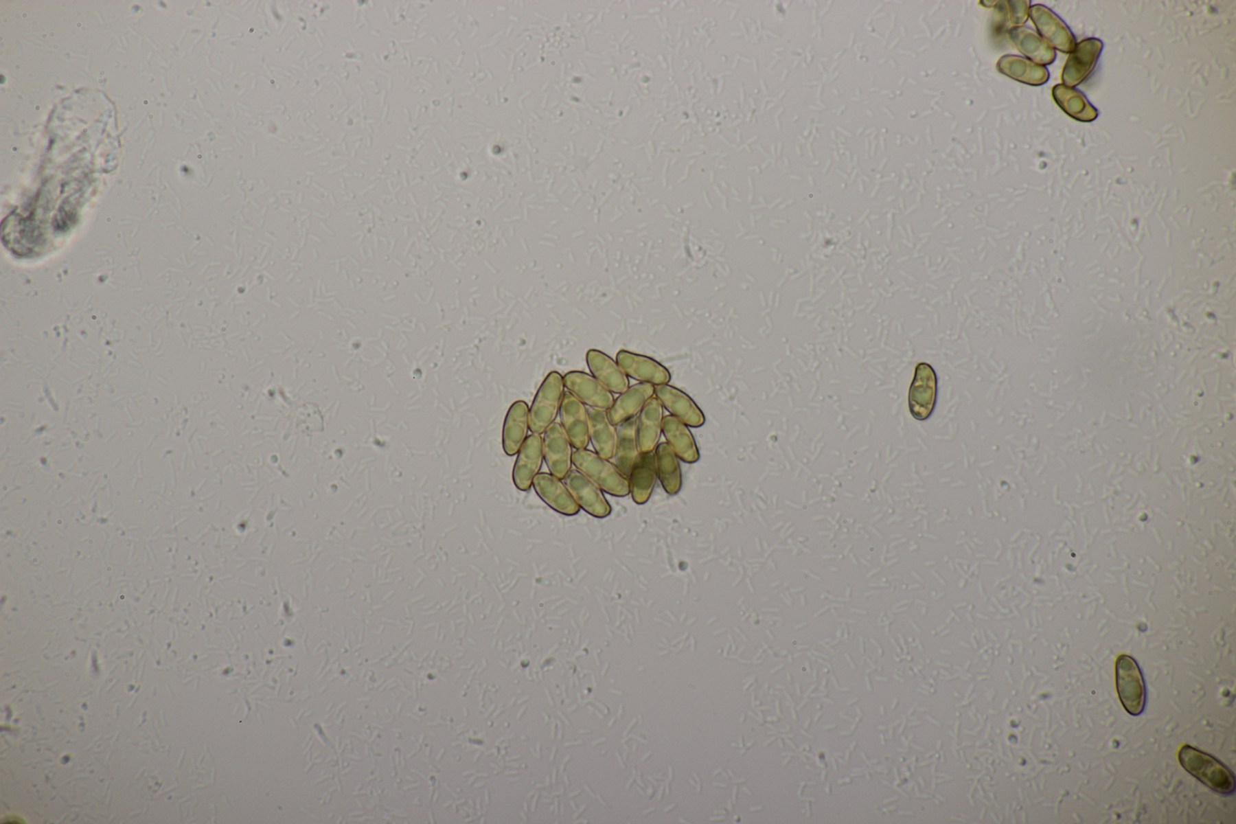 Sporen: (15.4 +- 0.8) µm x (5.9 +- 0.2) µm, Q=2.6 +- 0.2