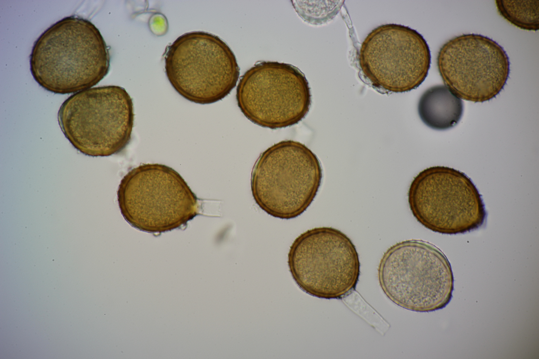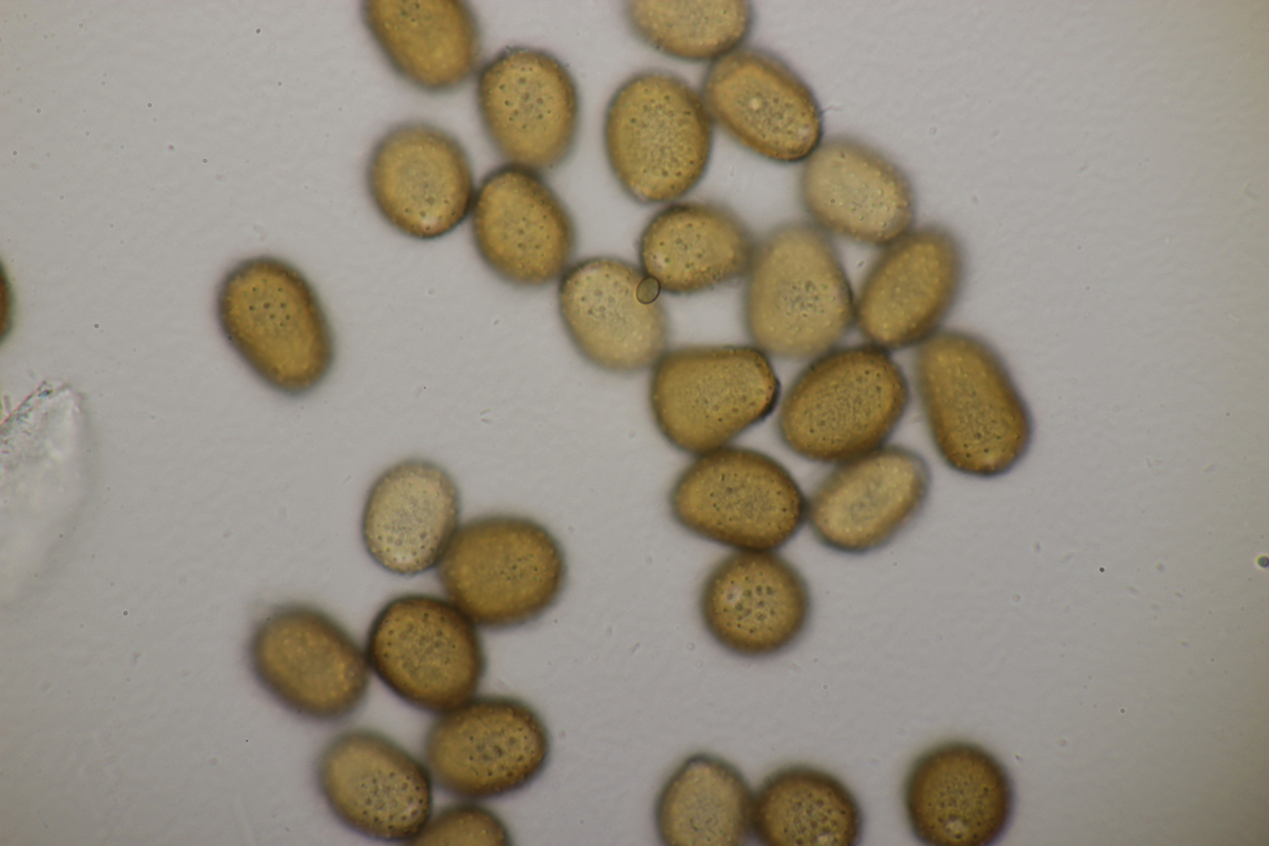 Sporen (10.8 +- 0.7) µm x (4.6 +- 0.2) µm, Q=2.3 +- 0.2