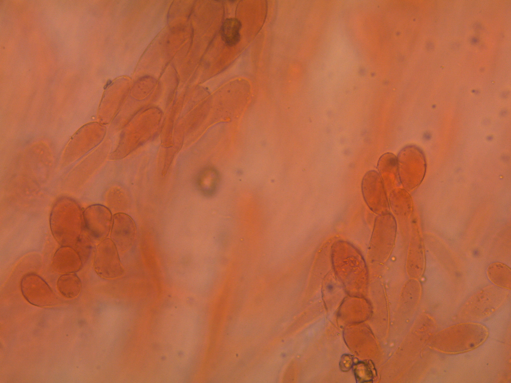 • Okay, da gibt es leider keine so tollen Bilder, aber die Art ist meines sehr begrenzten Wissens nach ja schon im Feld gut anzusprechen. Die Merkmale haben jedenfalls sehr gepasst: Rötendendes Fleisch, rötlicher Stiel und dunkelbraune Hutschuppen auf braurötlichem Grund. Extrem auffällig war der starke Weihrauch-Geruch, der ans Betreten des Tollwood-Festivals und bestimmte stark riechende Seifen erinnert. Gefunden im Fichtenwald in der Kranzberg-Region (Mittenwald). Die Kollektion passte übrigens geradezu perfekt zu den Zeichnungen in Erhard Ludwigs Kompendium. Die Sporenmaße bewegen sich zu den hier angegebenen Werten genau im Mittelfeld.