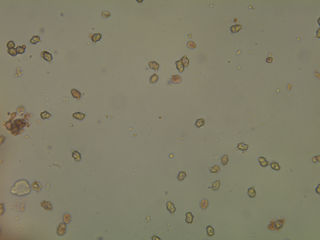 Sporen heterodiametrisch, meistens 5 oder 6-eckig; 8,56-11,12 x 6,76-7,89; Q-Wert (aus 10 Vermessungen) im Schnitt 1,31