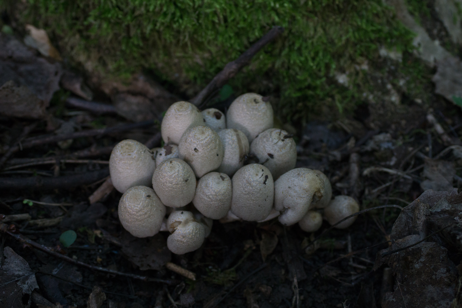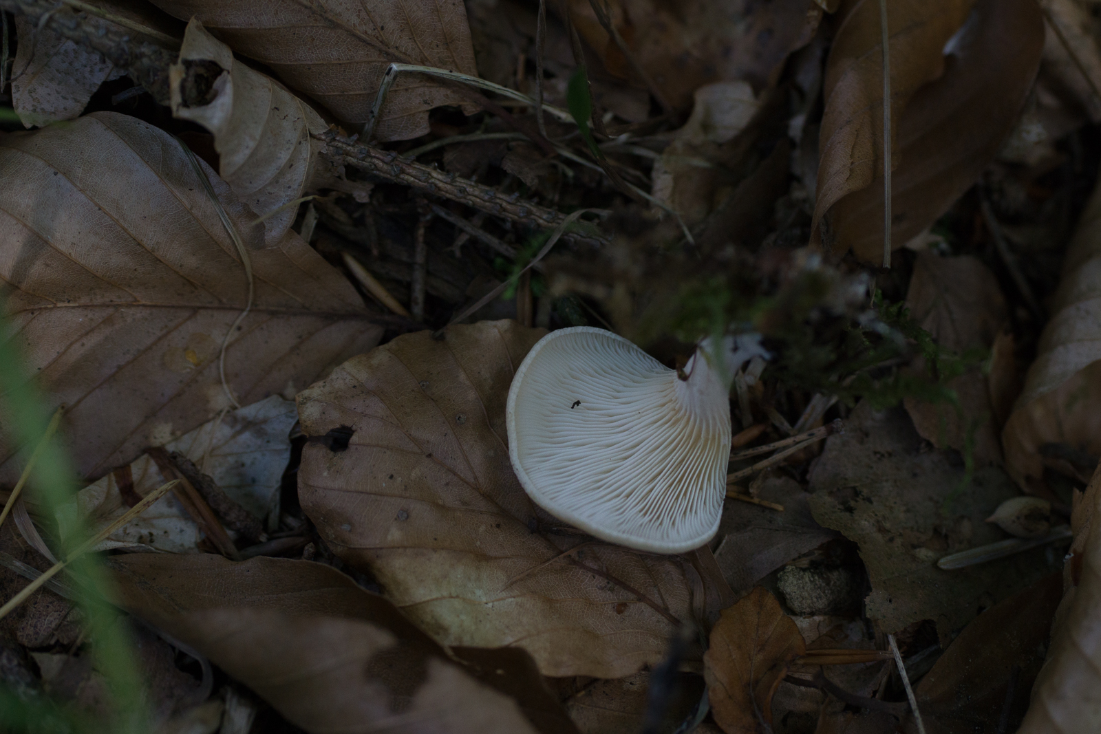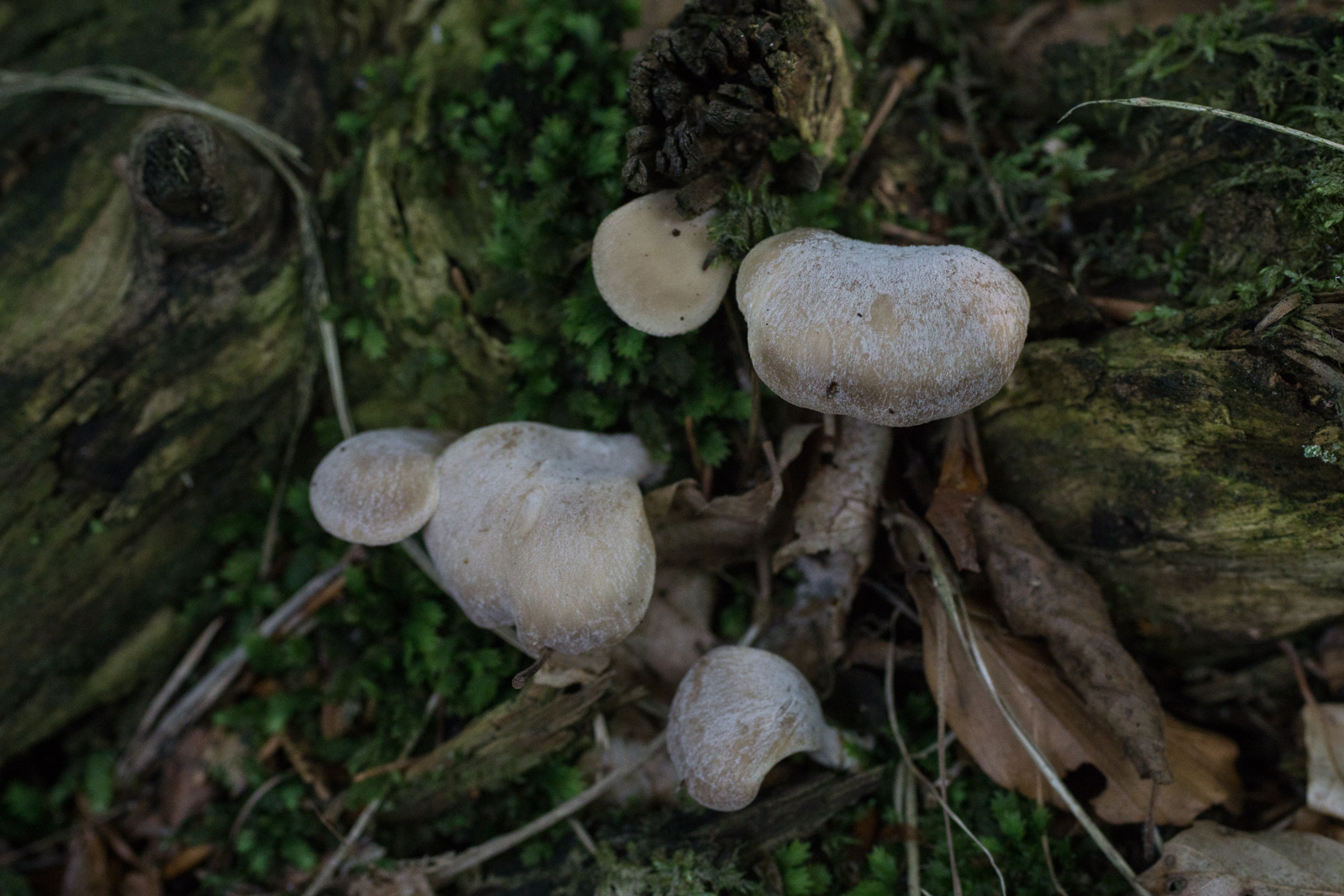 2. Das ist vermutlich ein Erstfund, sofern ich ihn korrekt bestimmt habe. Muschelförmige Totholzbewohner. Totholz identifizieren ist nicht meine Stärke, aber es wuchsen auch ein paar Samtfußkremplinge daran, weshalb ich von Nadelholz ausgehe. Hut bereift. Geruch unauffällig. Ich würde ihn Panellus mitis taufen?