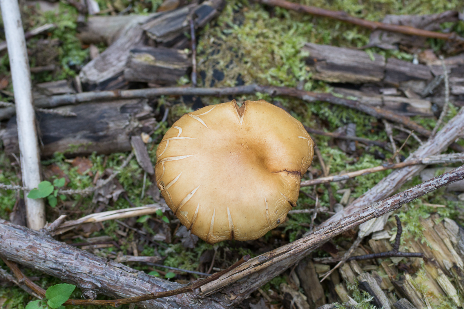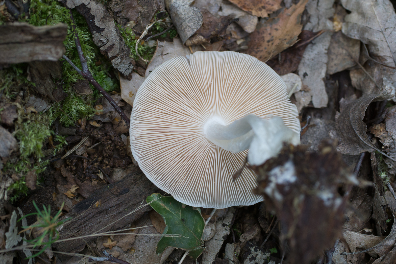 3. Ein Pluteus. Geruch dezent nach Rettich. Hut ca. 7cm. Wird sich ohne Mikro nicht lösen lassen, nehme ich an? Ideen waren eine Albinoform von P. cervinus oder Pluteus pellitus. Wahrscheinlich gibt's noch mehr, aber ich glaube die riechen nicht nach Rettich?