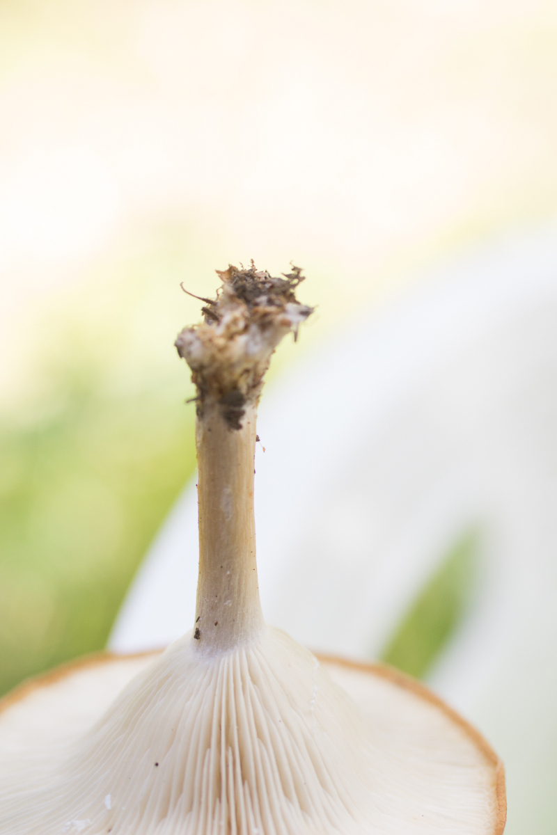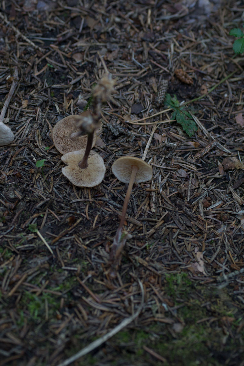 Auffällig ist lediglich der weiße Myzelfilz am unteren Stielende. Sehr klein. Hutdurchmesser so um die 2cm. Ich bin mir nicht mal bei der Gattung sicher. Clitocybe?