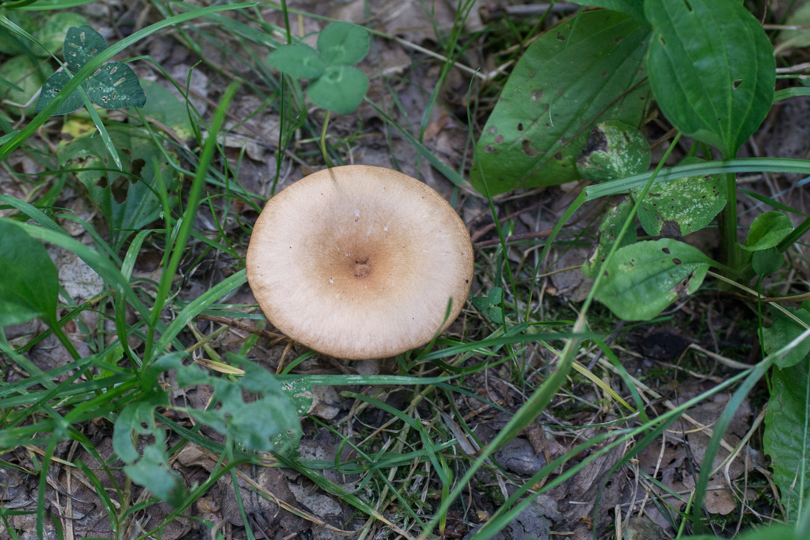 Auffällig ist lediglich der weiße Myzelfilz am unteren Stielende. Sehr klein. Hutdurchmesser so um die 2cm. Ich bin mir nicht mal bei der Gattung sicher. Clitocybe?