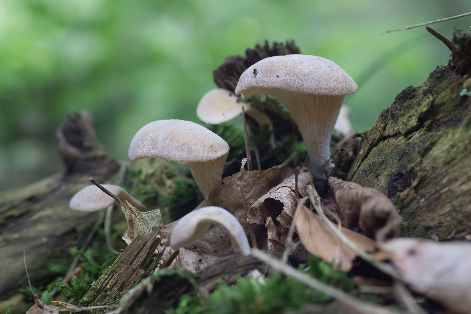 2. Das ist vermutlich ein Erstfund, sofern ich ihn korrekt bestimmt habe. Muschelförmige Totholzbewohner. Totholz identifizieren ist nicht meine Stärke, aber es wuchsen auch ein paar Samtfußkremplinge daran, weshalb ich von Nadelholz ausgehe. Hut bereift. Geruch unauffällig. Ich würde ihn Panellus mitis taufen?