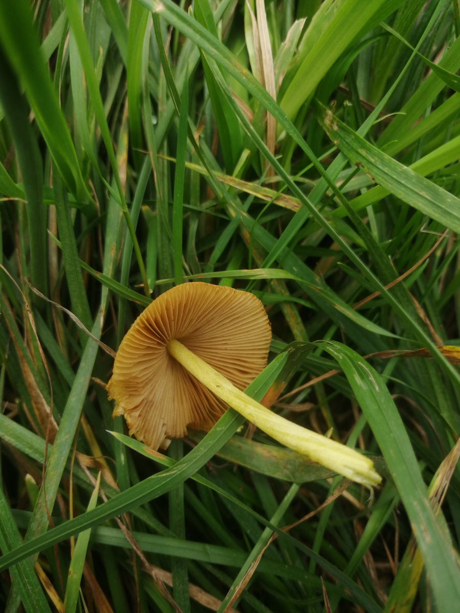 Ich hab so ziemlich alles fotografiert, was mir untergekommen ist: Gefunden habe ich viele Nelkenschwindlinge (auf der Wiese waren ganz wunderbar die dunklen Bereiche zu sehen, auf denen die Pilze teils schon wuchsen, teils noch wachsen werden, schöne große Ringe), die anderen kenne ich nicht, deshalb würde ich sie gerne hier einstellen, vielleicht kann man ja den einen oder anderen gut erkennen (vor allem den gelben finde ich schön, hab ich noch nie gesehen: der Stiel war wirklich zitronengelb, ebenso die Sitze des Hutes, das sieht man leider nicht so richtig):
