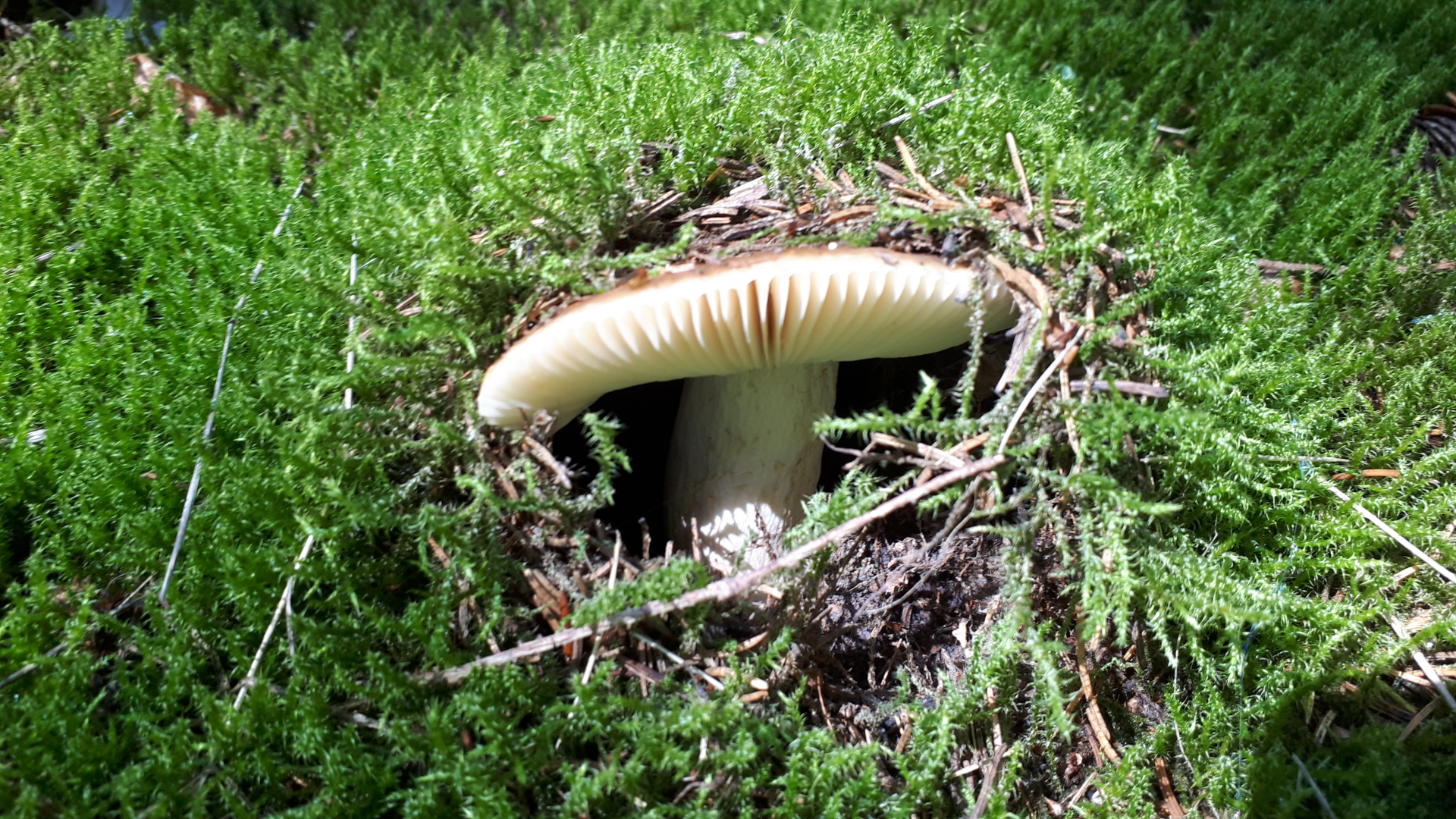 vom ersten Eindruck her würde ich hier zustimmen. Die Hutfarbe das Vorkommen im sauren Fichtenwald und das der eigentlich immer sehr tief in der Erde steckt passt schon. Was mich stört ist die deutliche Riefung am Hut des ersten Exemplares was aber dessen Alter zuzuschreiben sein wird. Mild im Geschmack sollte der aber schon sein. Ein Geschmacks- und Geruchstest ist bei Täublingen zwingend notwendig.
