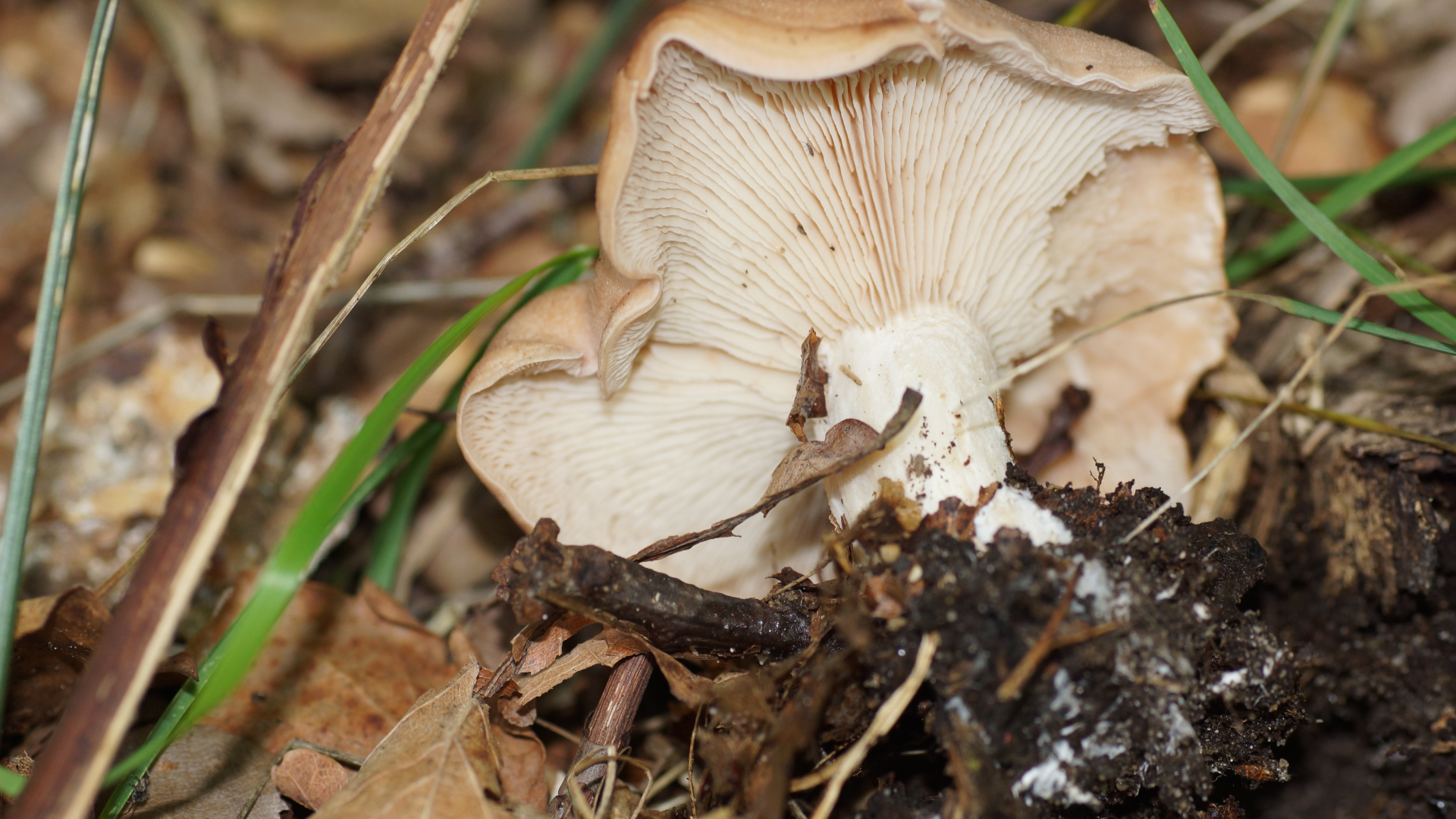 Leider habe ich versäumt, ein Schnittbild zu machen. Der Pilz ist innen ebenso hellbraun, wie außen. Entlang des Stiels filzig. Geschmack neutral, mild.Kein Milchaustritt.