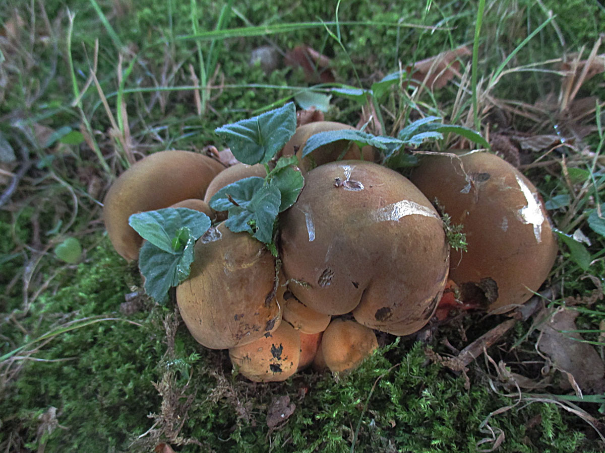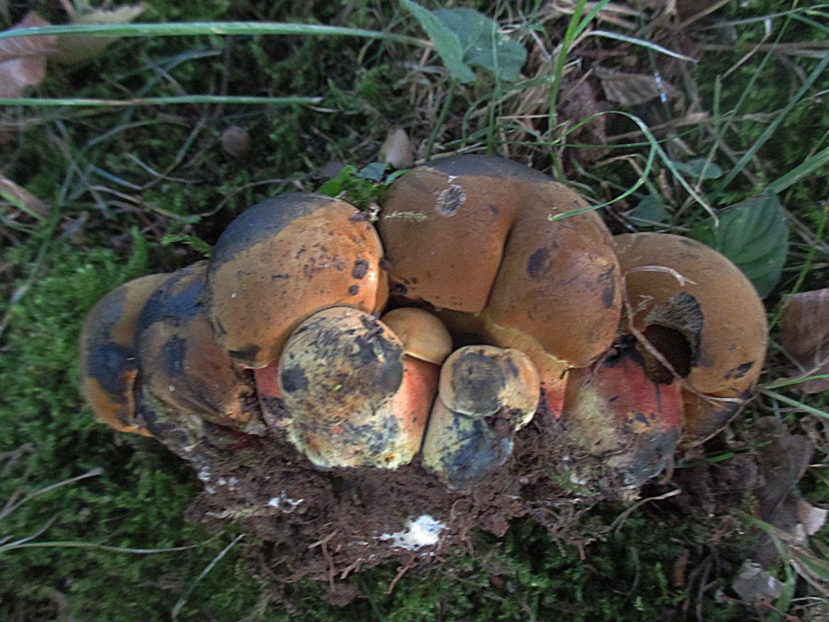 Ebenfalls zu Dutzenden begannen die Netzhexen, Netzstieliger Hexenröhrling (Suillellus luridus) sich diverse Flächen in den Parks zu erobern.