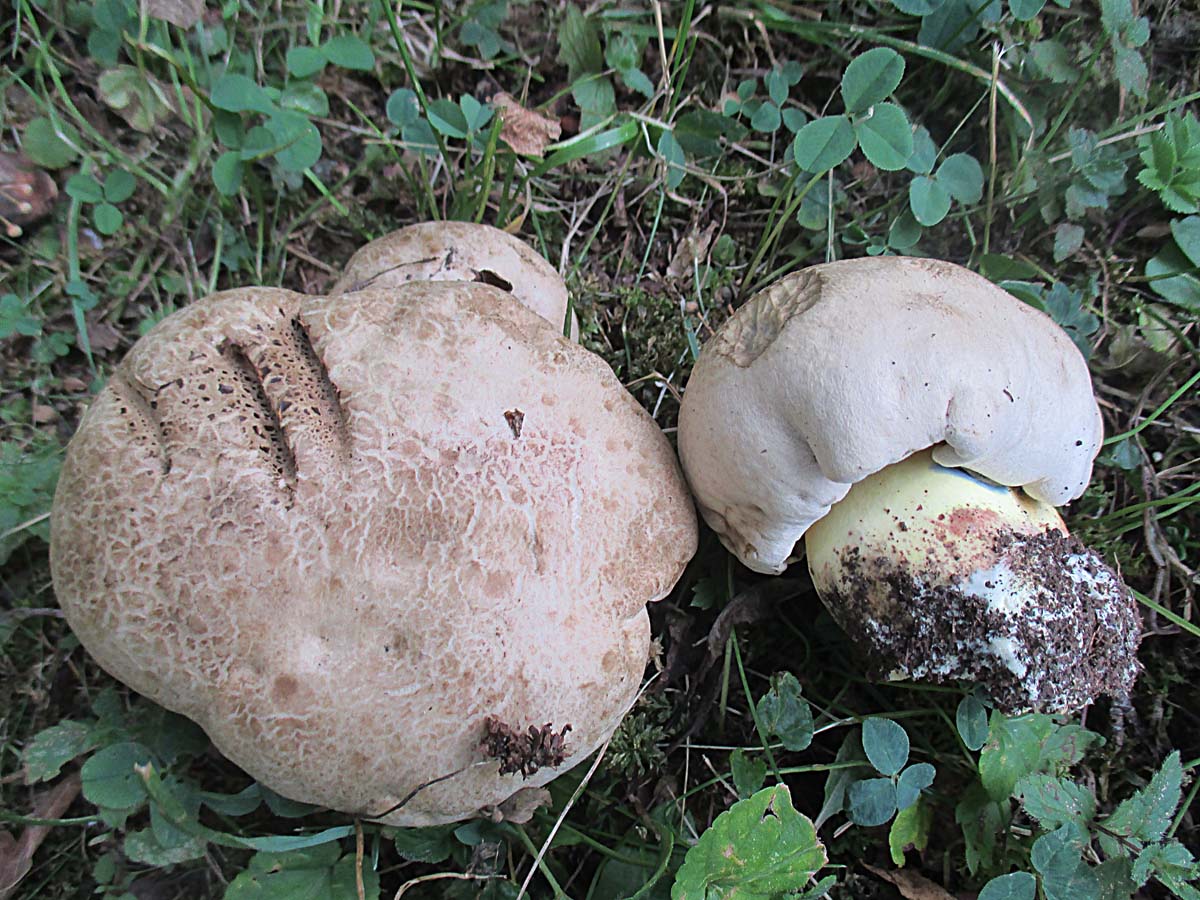 Genau, es waren Wurzelnde Bitterröhrlinge (Caloboletus radicans), neben denen er abkniete, was ihr natürlich alle bemerkt habt!![]()