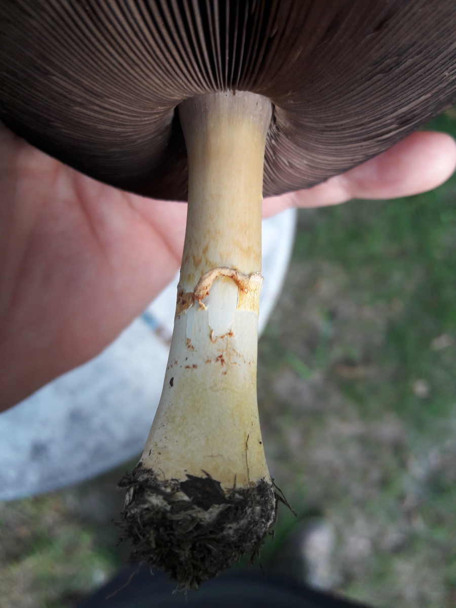 Bin gespannt auf eure Einschätzung, ich schaff's echt nicht den vernünftig einzuordnen. Entweder passt der aufsteigende Ring nicht, oder die verdickte Stielbasis, oder Verfärbung oder Geruch...oder oder oder :)