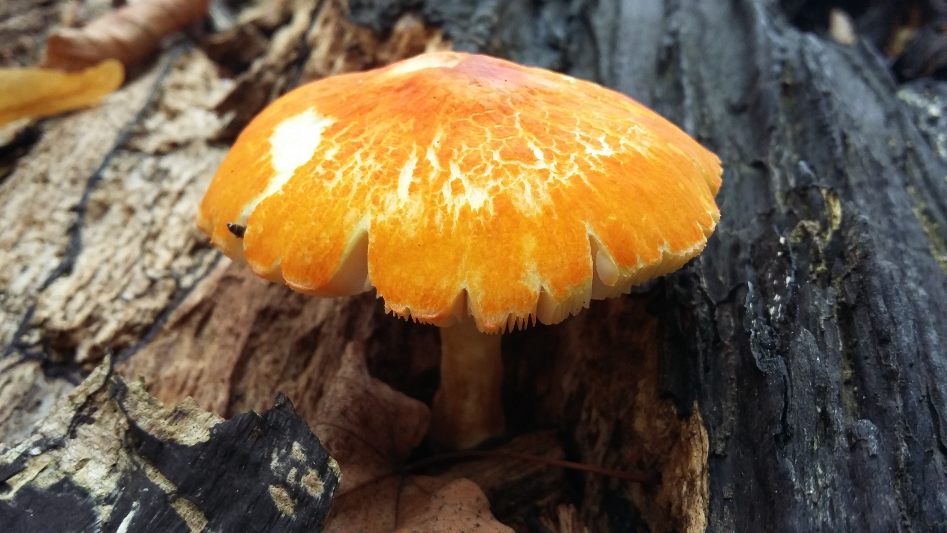 Von weitem ein oranger Fleck auf einem morschen Buchenast, entpuppte sich der Fleck dann als Pluteus aurantiorugosus.