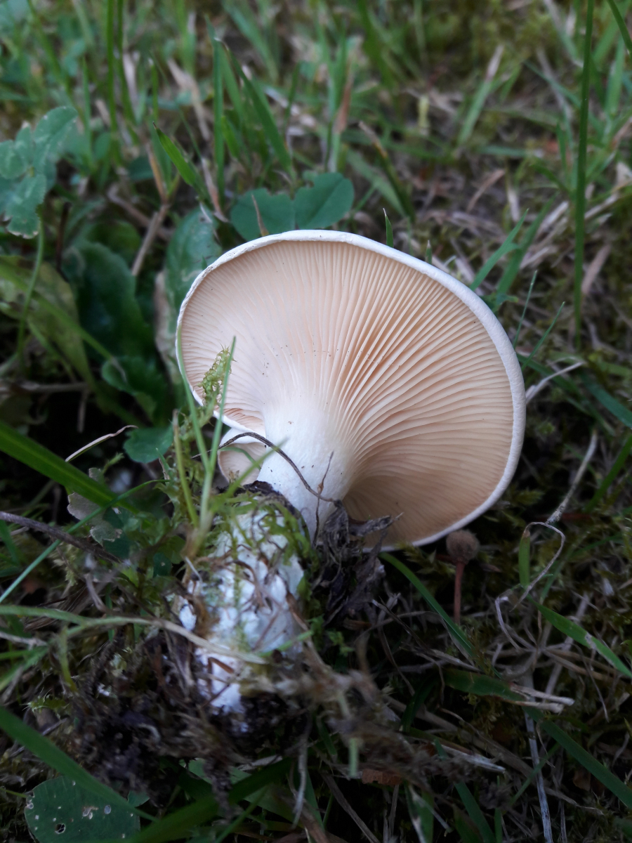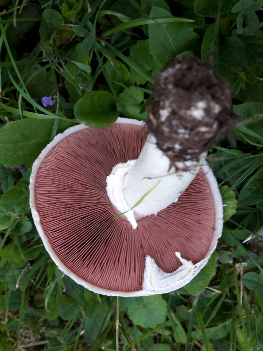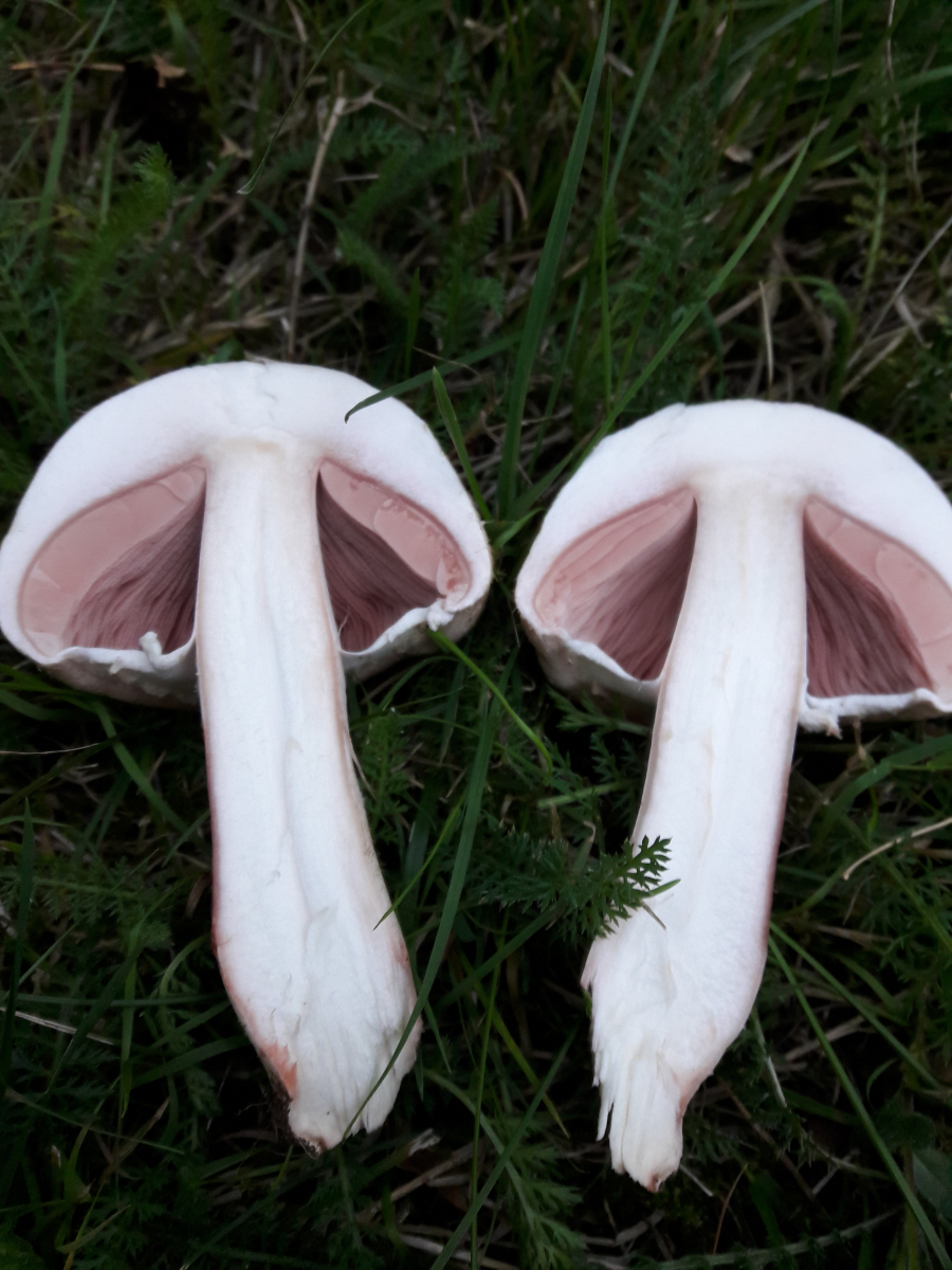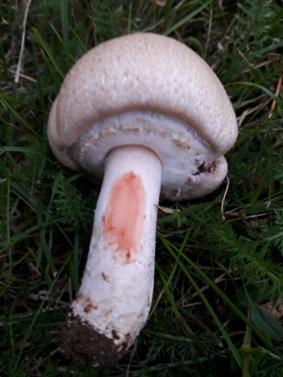 15. Agaricus sp. Rötete nach Reiben am Stiel aber nicht im Schnitt. Geruch nach Marzipan