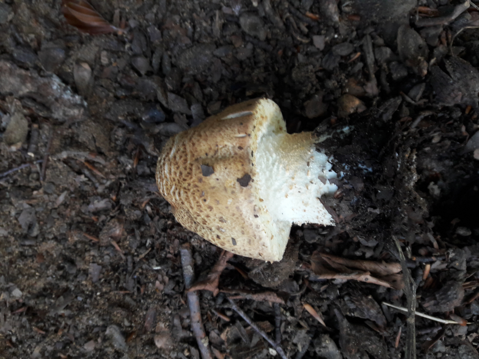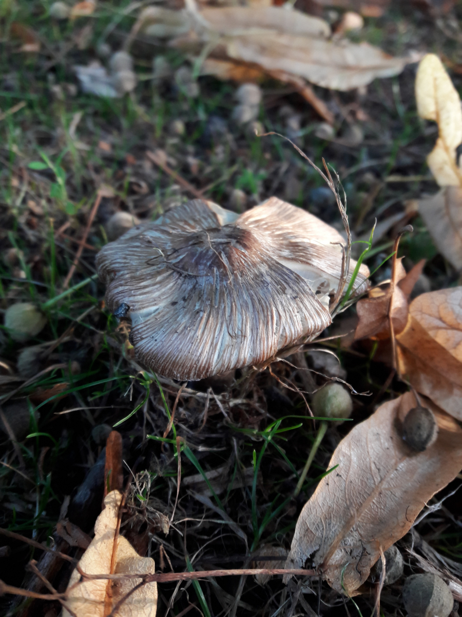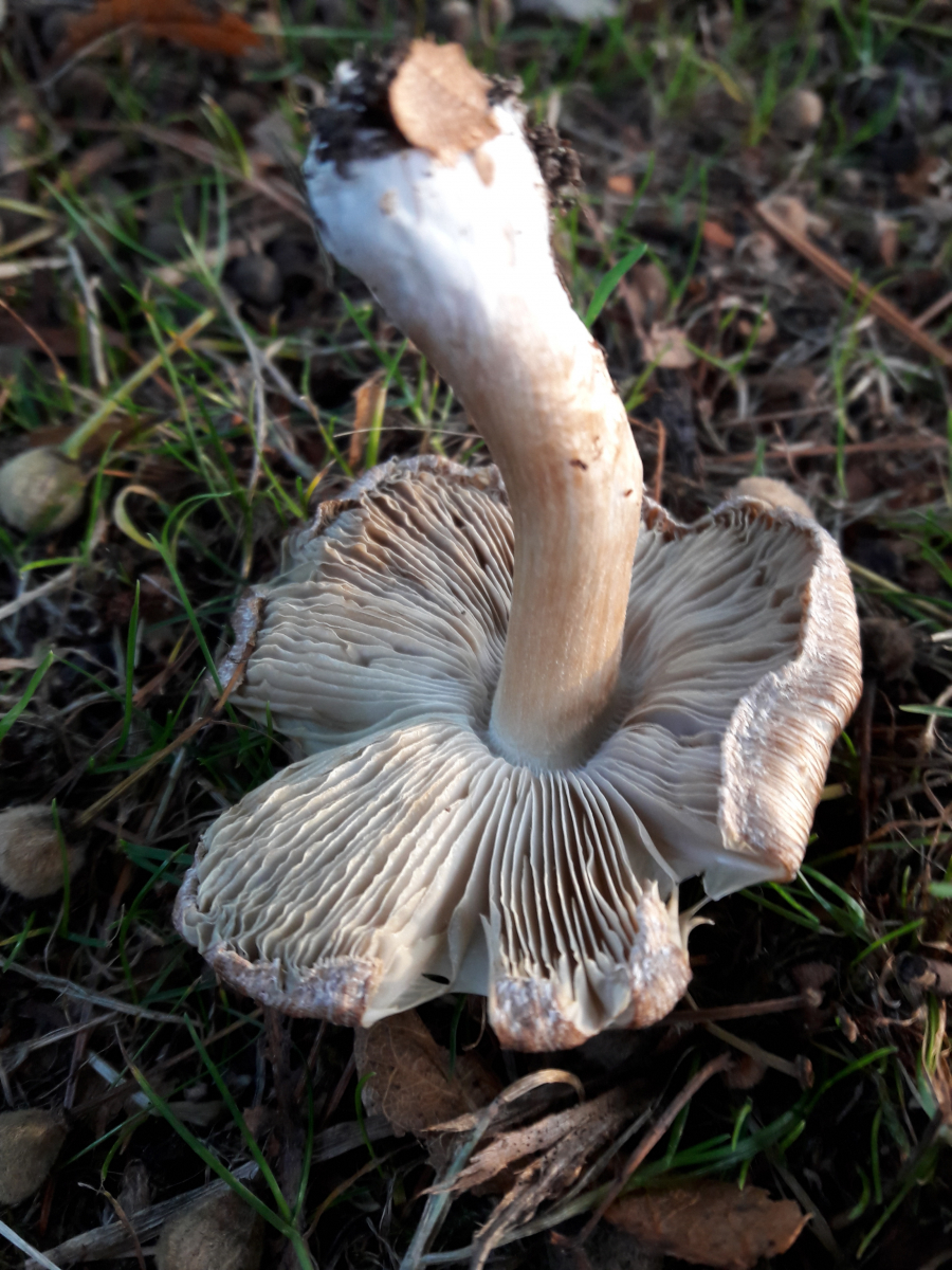 15. Agaricus sp. Rötete nach Reiben am Stiel aber nicht im Schnitt. Geruch nach Marzipan