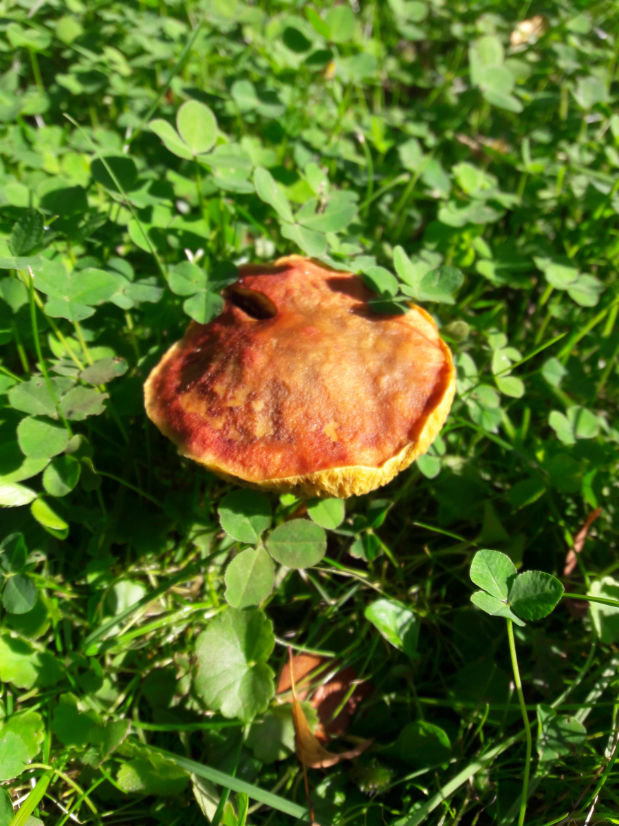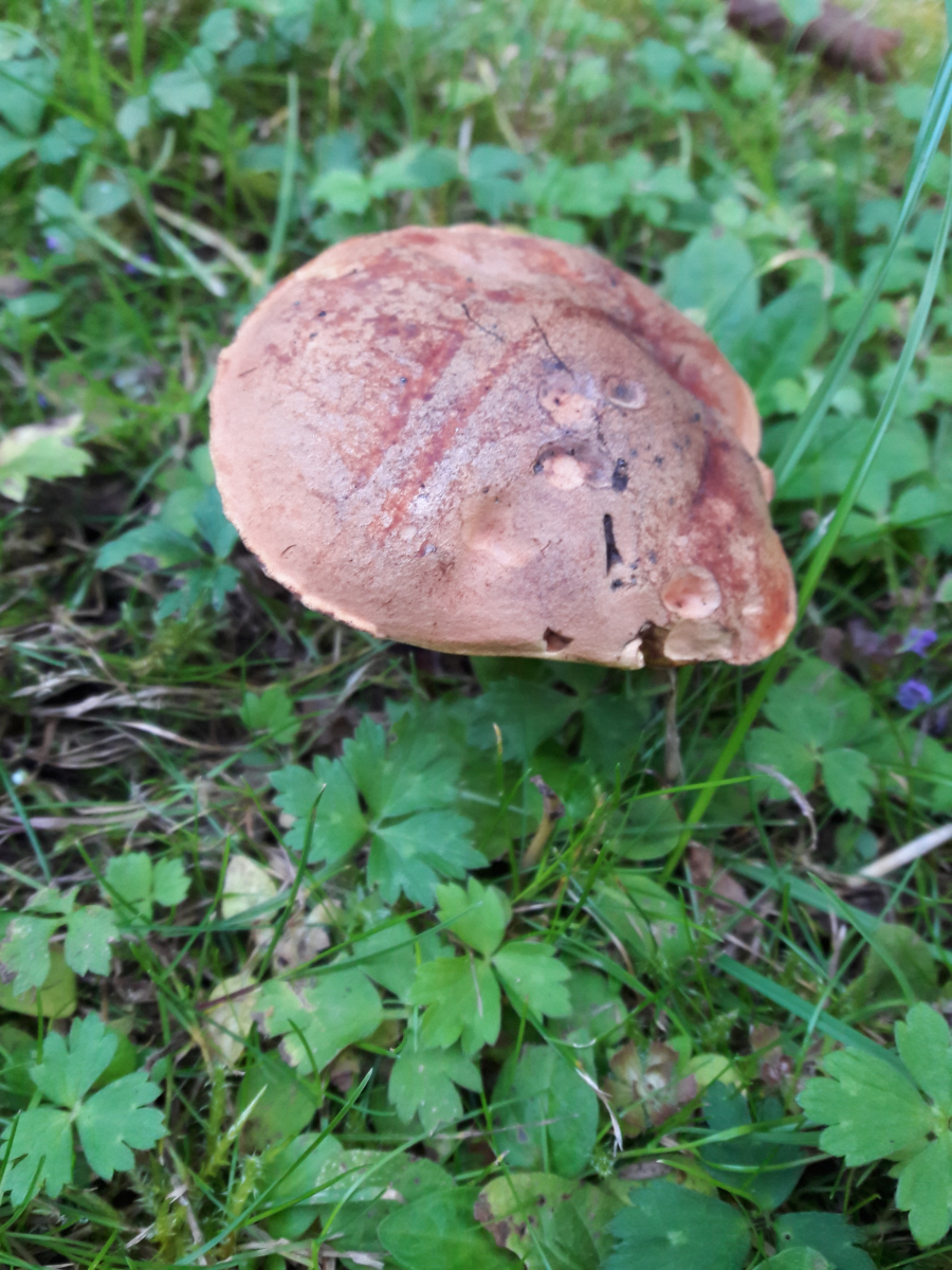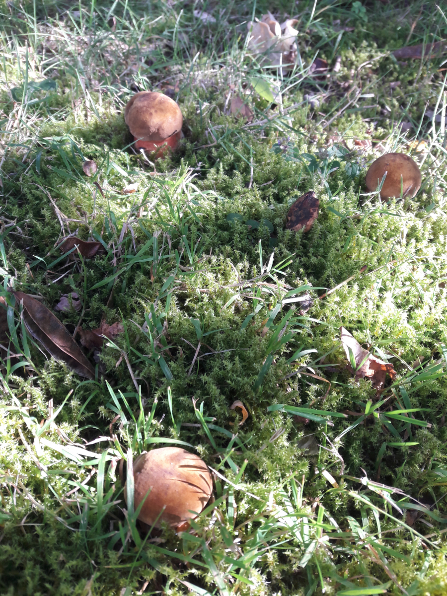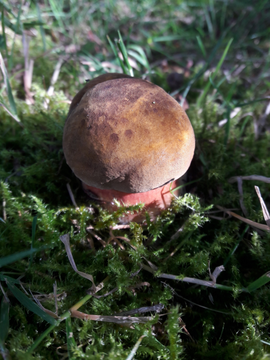 1. Der Blutrote Filzröhrling (Horiboletus rubellus) genießt die Abendsonne