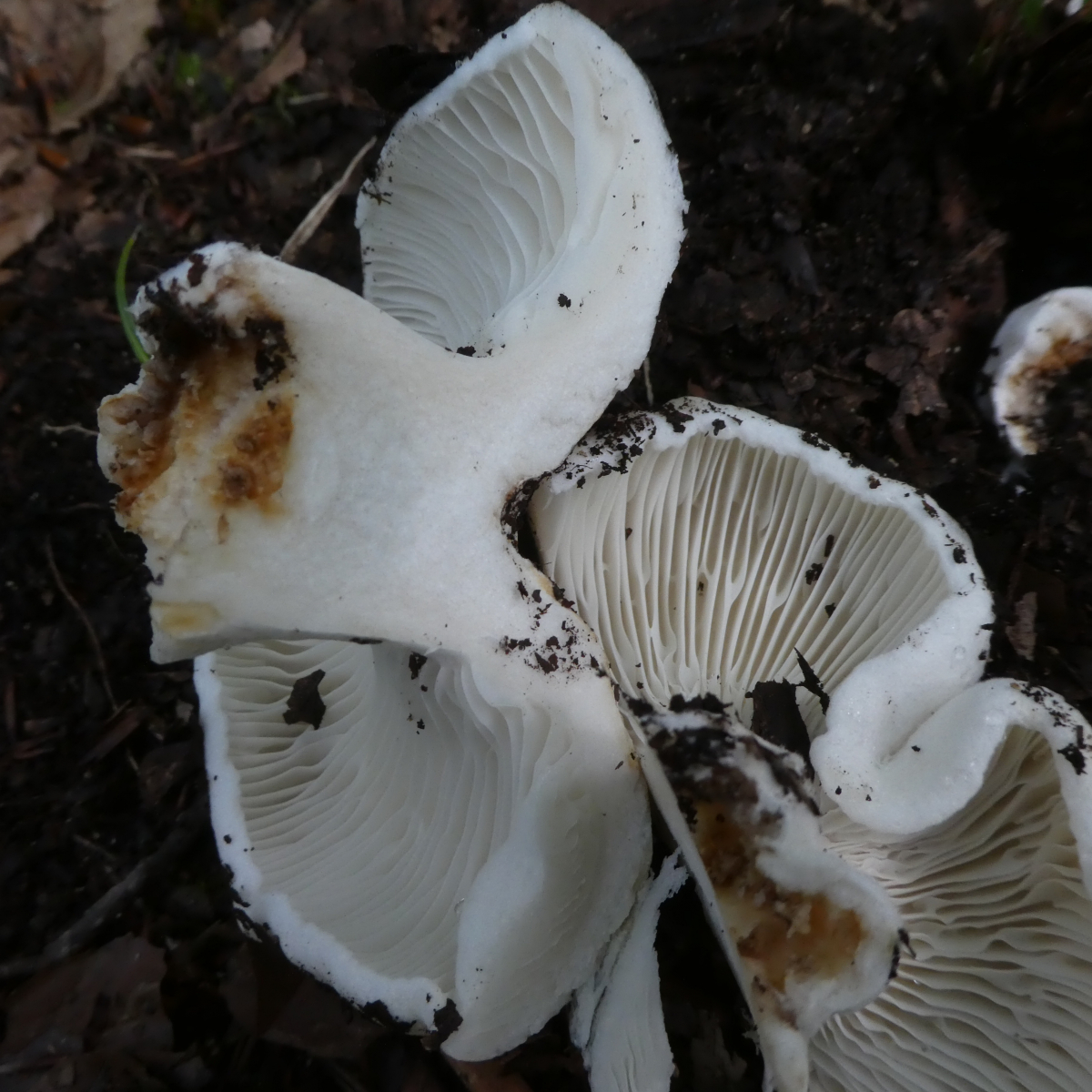 Der gezeigte Pilz hat einen Durchmesser von ca. 10 cm, er milcht nicht, das Fleisch ist sehr fest, einen speziellen Geruch konnte ich nicht feststellen. Den Rest sieht man auf den Fotos.
