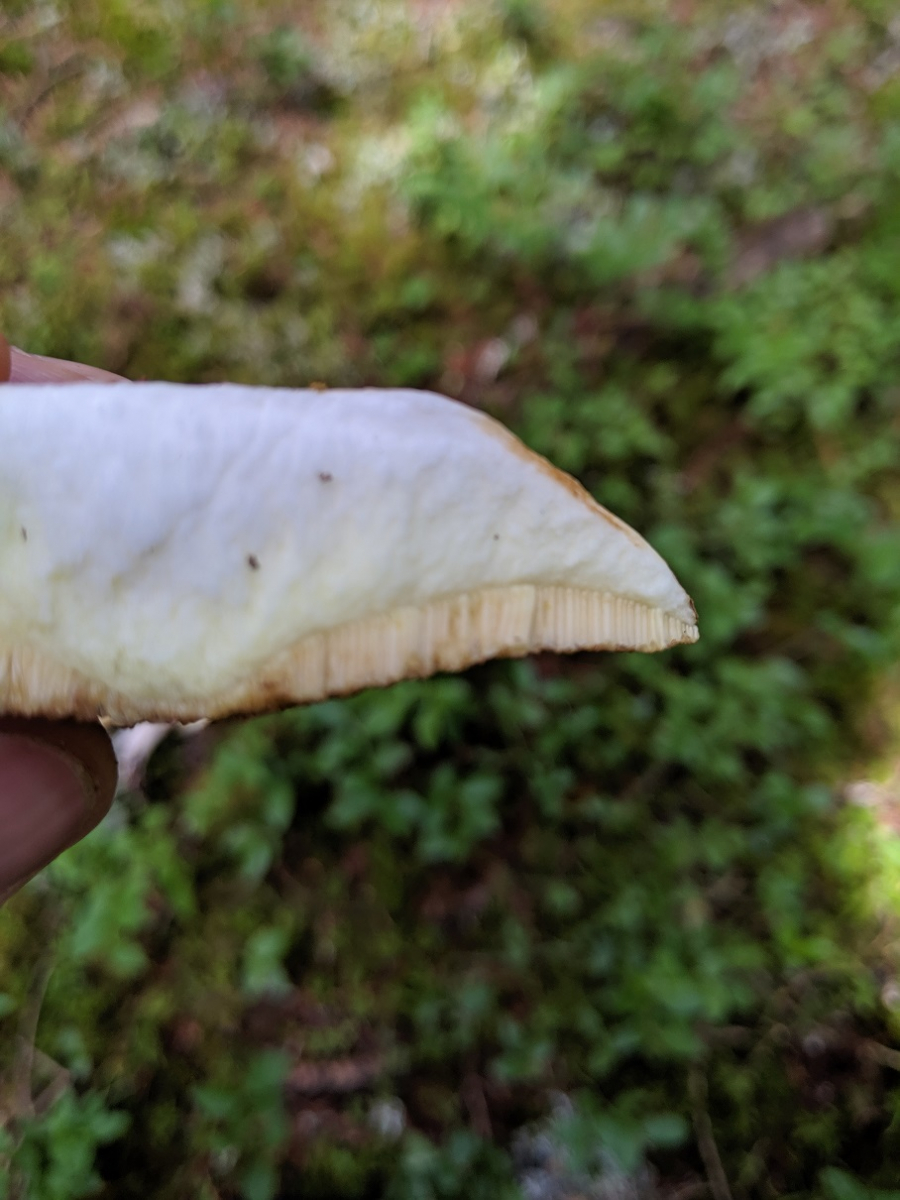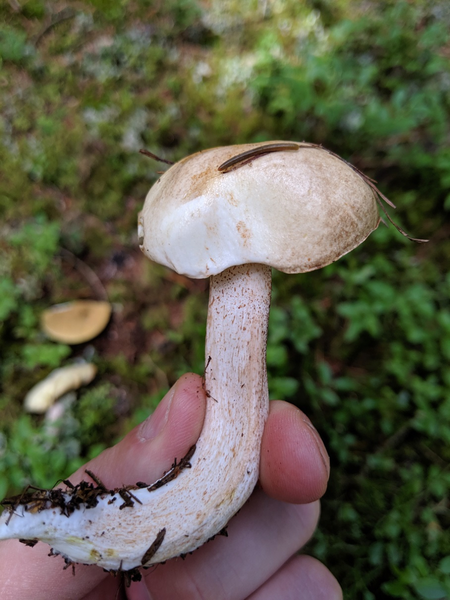 Eine kurze Suche im Internet lässt mich auf Elfenbeinröhrling tippen. Wenn ich mir aber bei 123 Pilze die Bilder und Beschreibung vom Weißbraunen Schmierröhrling anschaue, dann kann ich die beiden eigentlich nicht unterscheiden.