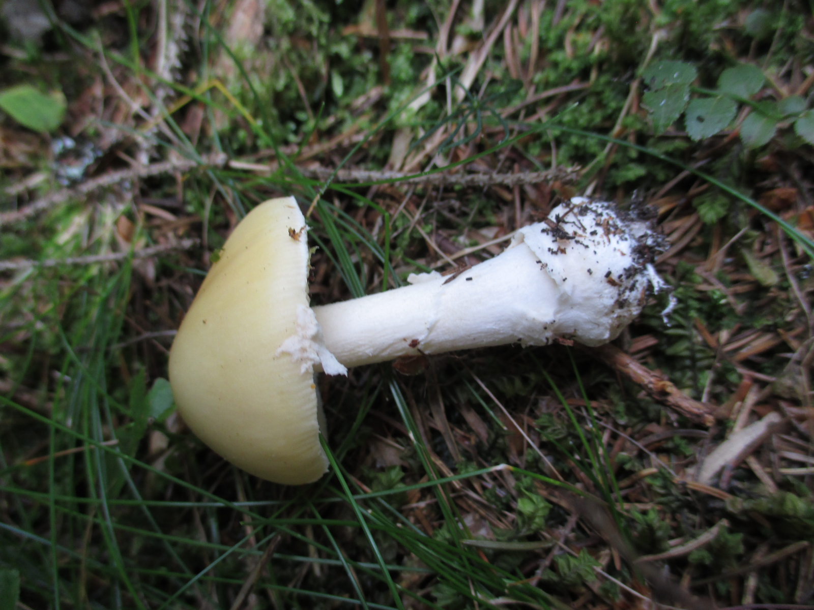 Welche Amanita ist das? Er war zitronengelb (Farbe am Foto täuscht), keine Velumreste am Hut.