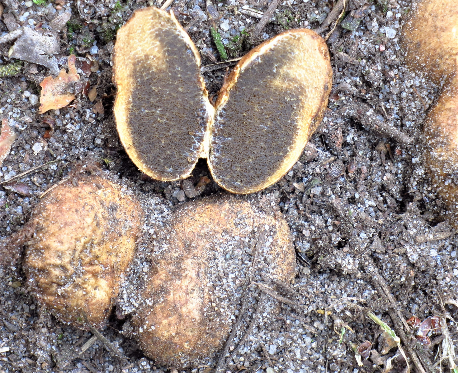 Nach Gunnars Beitrag habe ich mir die Wurzeltrüffel nochmals genauer angesehen, da ich vorher an Rhizopogon verii nicht gedacht hatte.