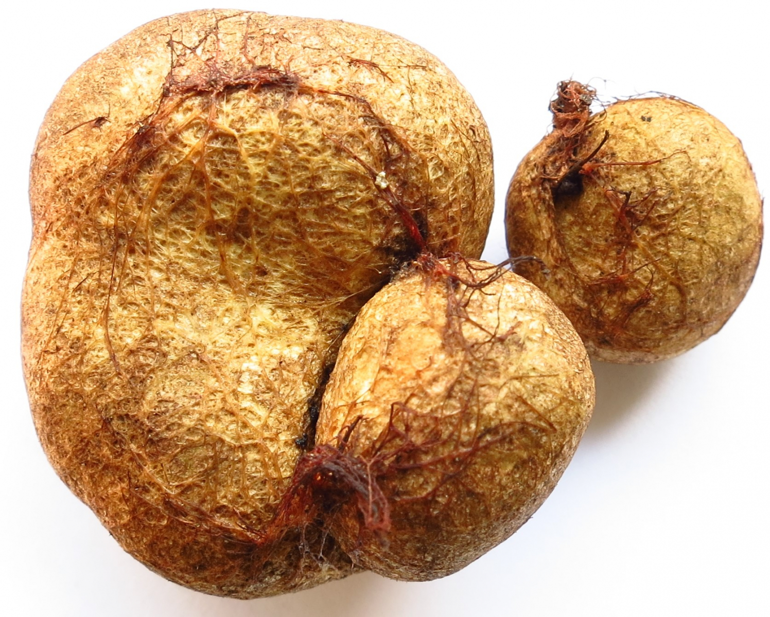 Die rötliche Farbe der Rhizomorphen war auch deutlicher zu erkennen. Allerdings glaube ich bei einigen Exemplaren zu sehen, dass einige wenige Rhizomorphe auch bis auf die Oberseite der Trüffel laufen.