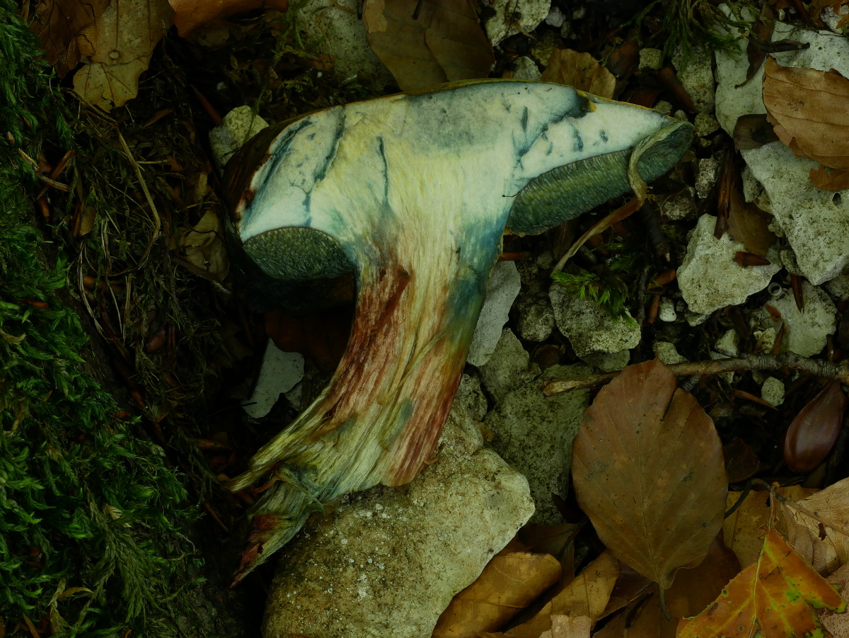 Gestern bei trübem Wetter in einer engen Bachschlucht. Die Huthaut war für mich eindeutig fein besandet und von der Farbe her dazu passend. Vielleicht zu fein für variegatus.Davon abgesehen habe ich den schon Jahre nicht mehr gesehen. Und auch nicht im Kopf, dass der eher (oder nur?) sauer mag. Da ich den Pilz nicht verletzten wollte, konnte ich das Stielnetz auch nicht erkennen. Sah untendrunter auch für mich nicht rötlich gefärbt aus.