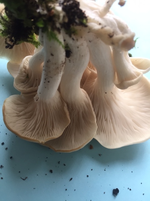 Ich finde die Idee mit dem Rillstiliegen eigentlich gar nict so abwegig, der kann soclhe Hutfarben durchaus haben, und auch die Rippen laufen nicht immer arg deutlich am Stiel herab. Aber: Hier ist das schon irgendwie zu wenig ausgeprägt. Blöd nur, daß die Farben selbst für junge Lungenseitlinge schon zu krass sind, für echte Austern aber die Stiele zu lang und der gesamte Habitus nicht wirklich dazu passt.