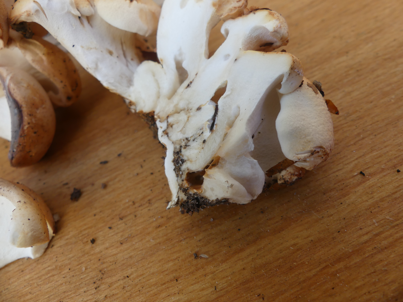 Auch der Geschmack passt: zunächst angenehm, etwas an Krause Glucke erinnernd, nach einiger Zeit ist eine schwach ausgeprägte Bitterkeit wahrzunehmen. Die ist aber nicht unangenehm, sondern ganz dezent. Die Fruchtkörper sind noch ziemlich jung, auch das passt.