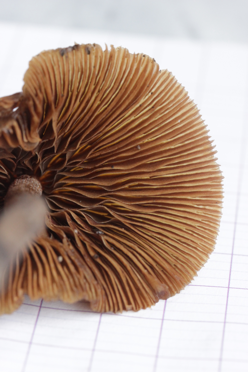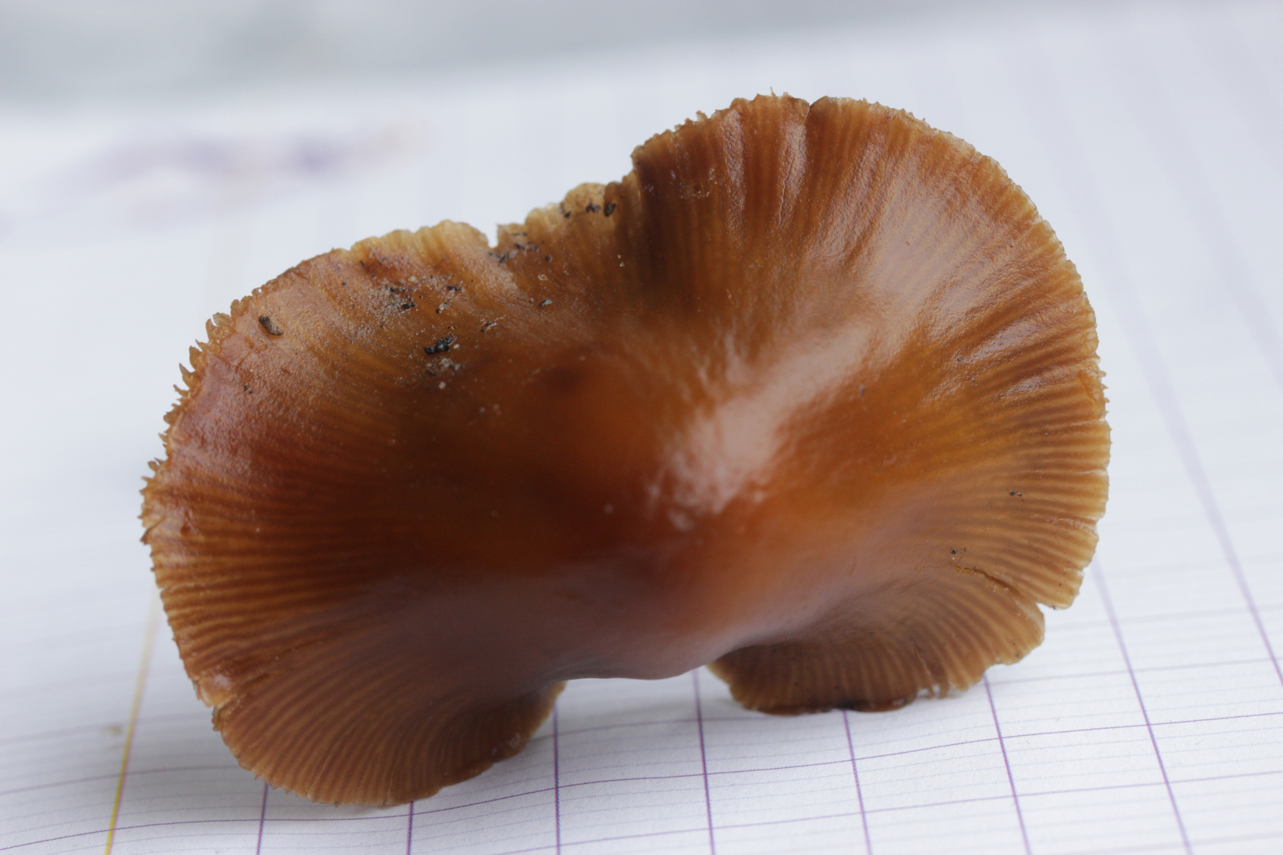 gestern fanden wir im Essener Grugapark in einem Beet bei strömendem Regen diesen Pilz. Da die Freunde kleiner brauner Pilze alle schon versorgt waren, "durfte" ich den Pilz mit nach Hause nehmen. Für eine Conocybe war er eher groß mit einem Hutdurchmesser von 5,5 cm (entlang der breiteren Achse). Wenn ich mich durch diverse Conocybe-Schlüssel arbeite, lande ich bei Conocybe tenera. Paßt das soweit? Wäre ja schon eher groß für die Art.