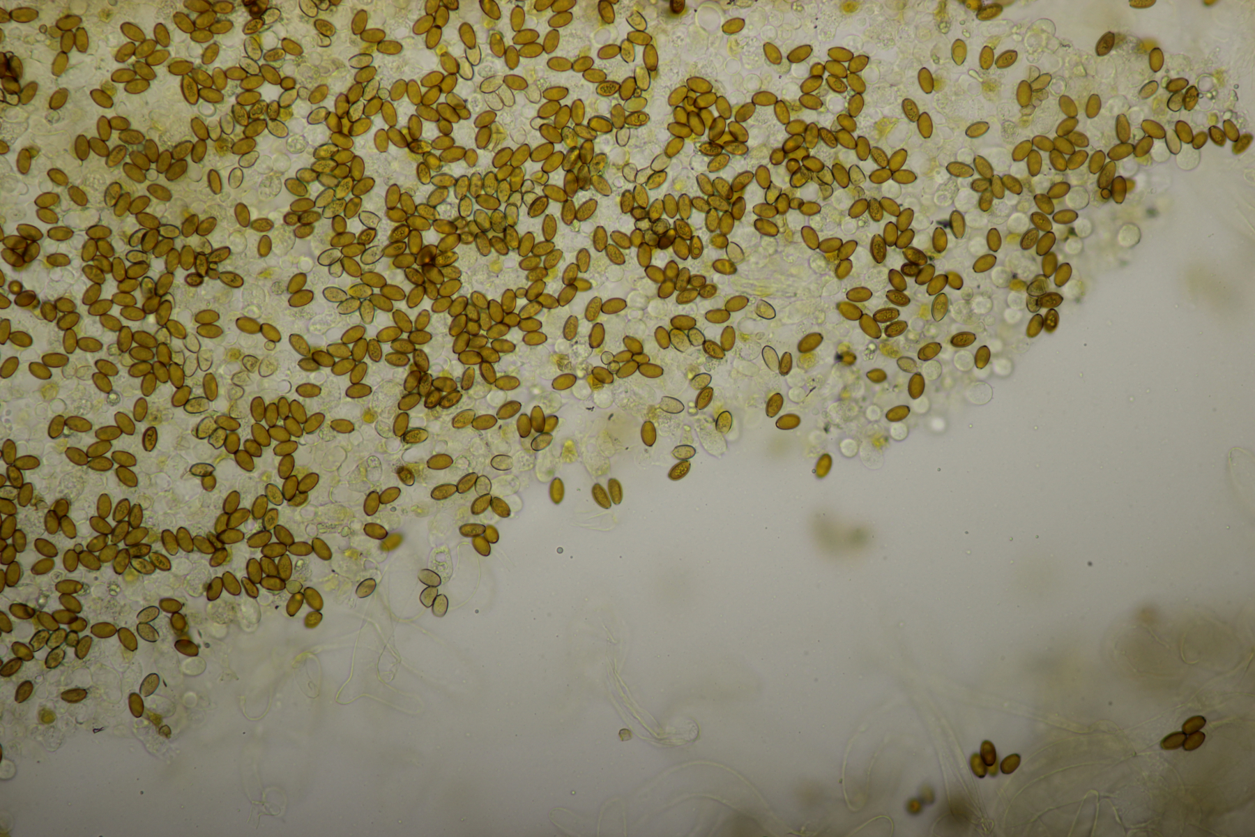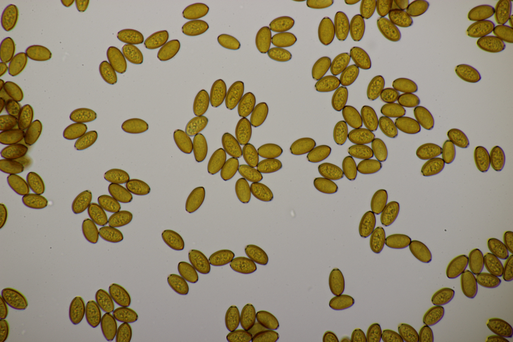 Sporen (11.7 +- 0.6) µm x (6.5 +- 0.3) µm