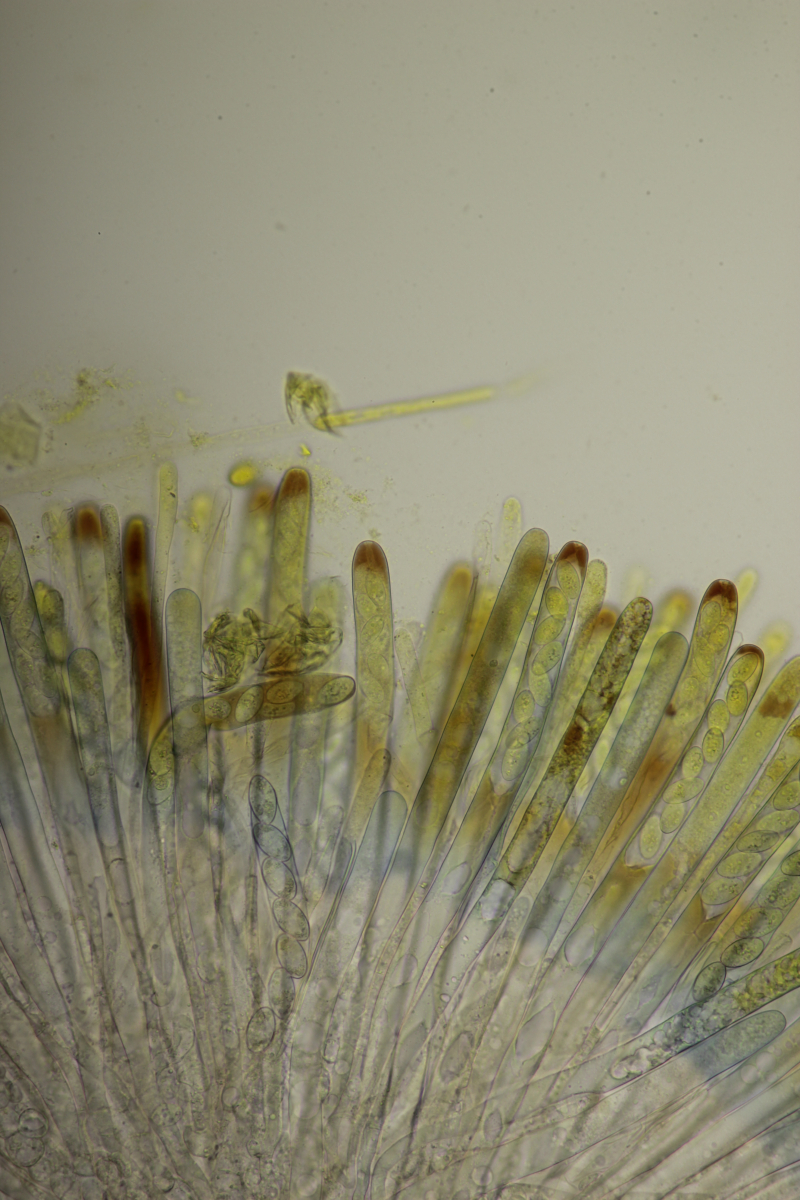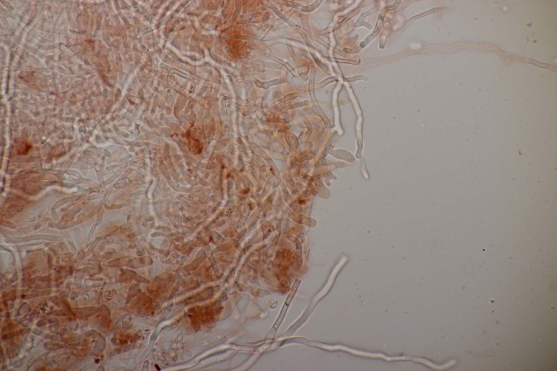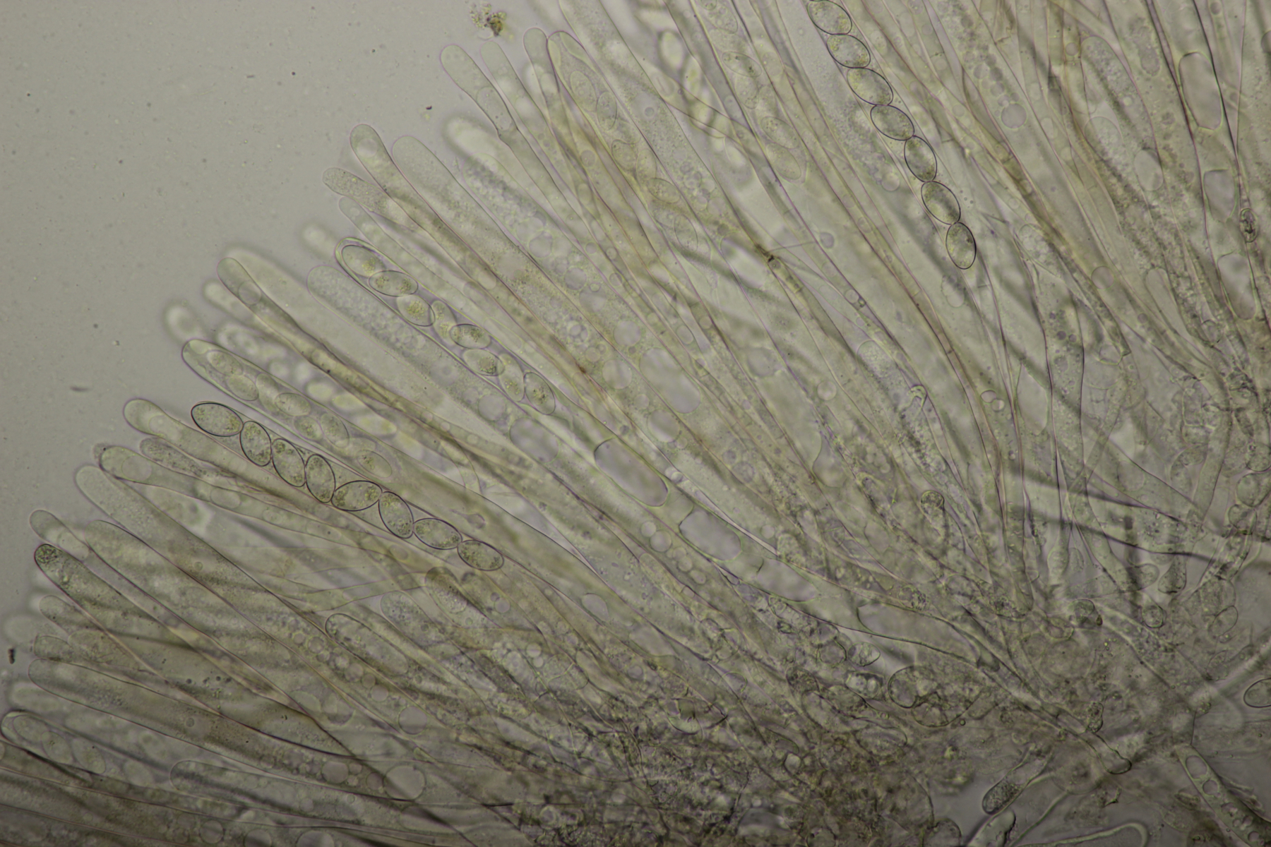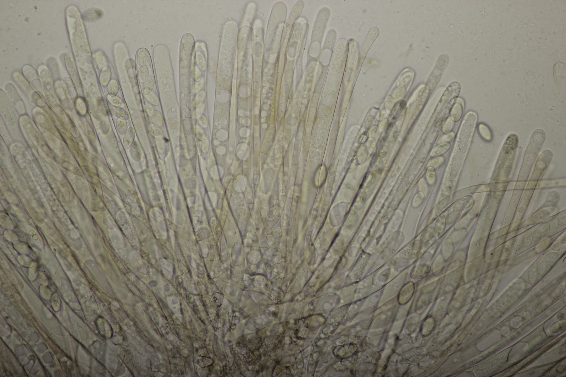 In KOH mikroskopiert, weil sonst einfach nur alles zusammenklebte. Sporen waren leider weit und breit keine zu sehen.