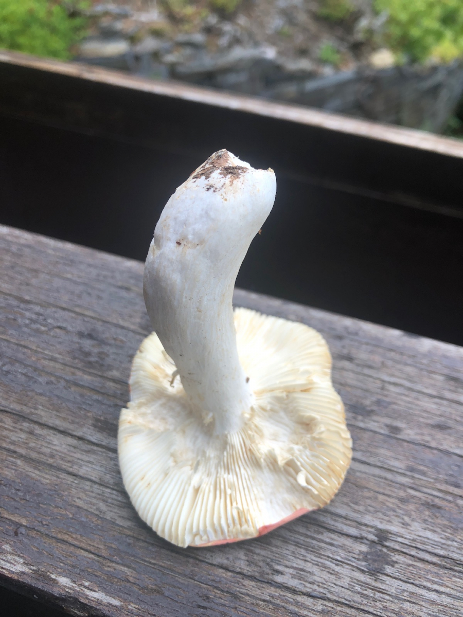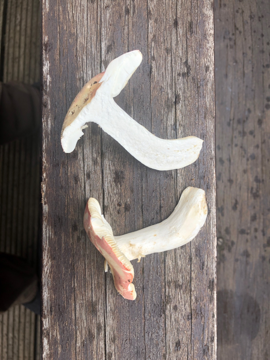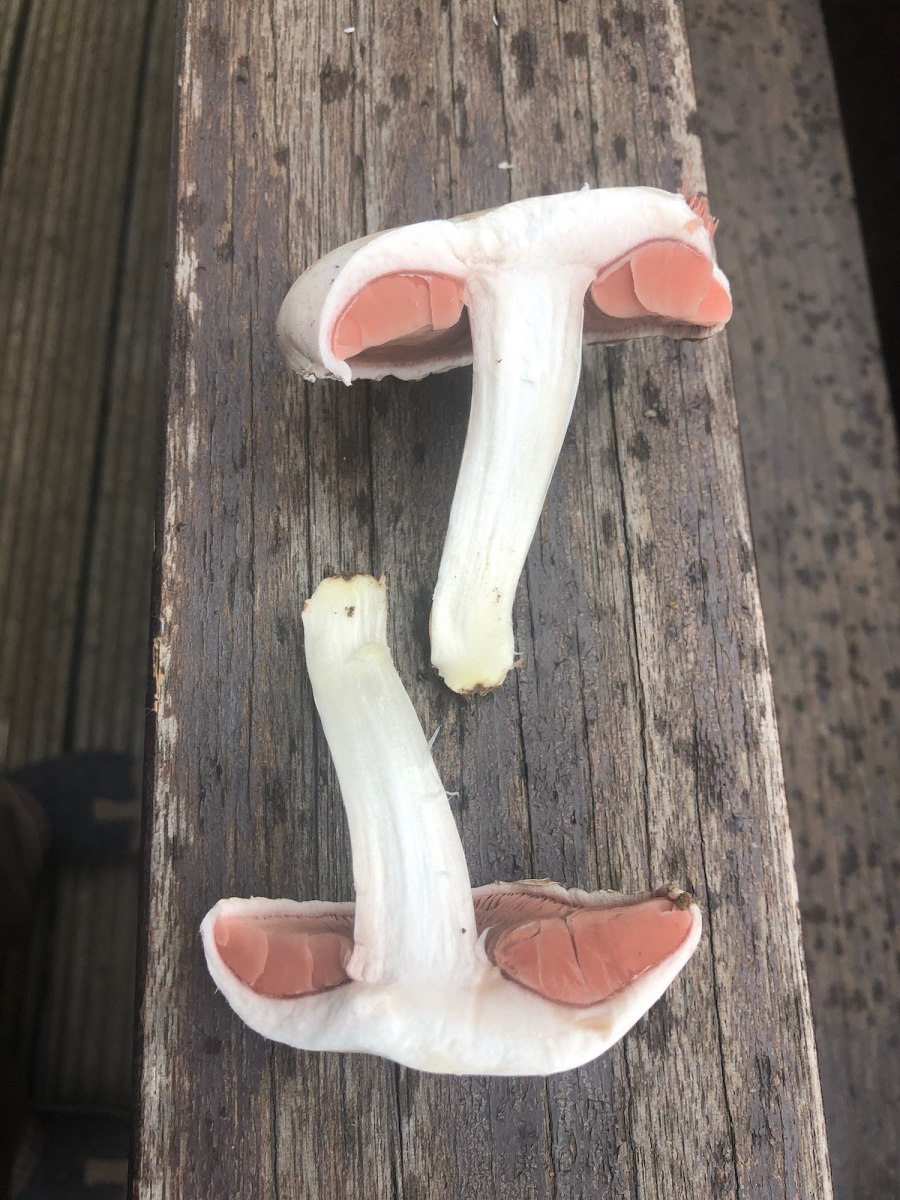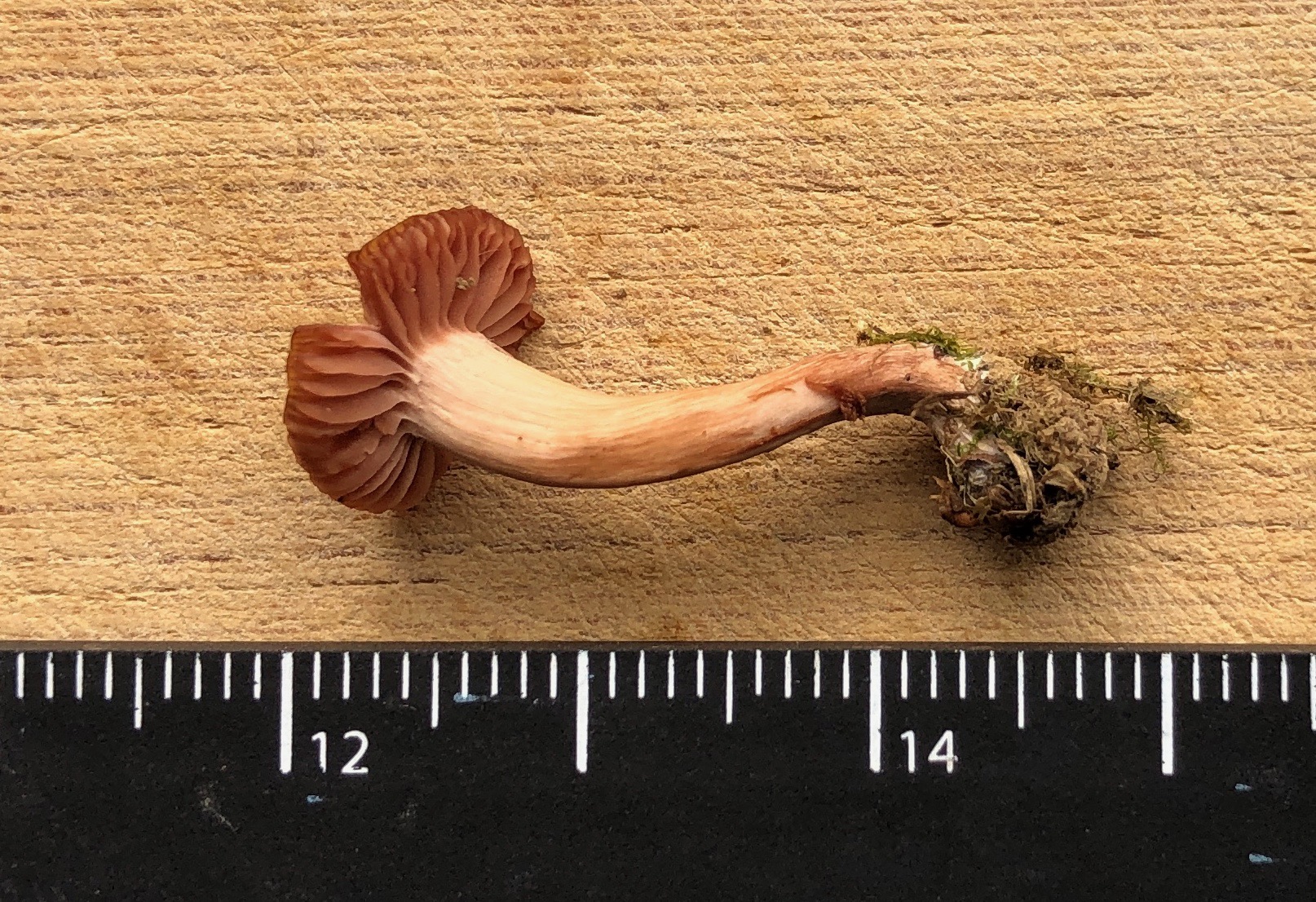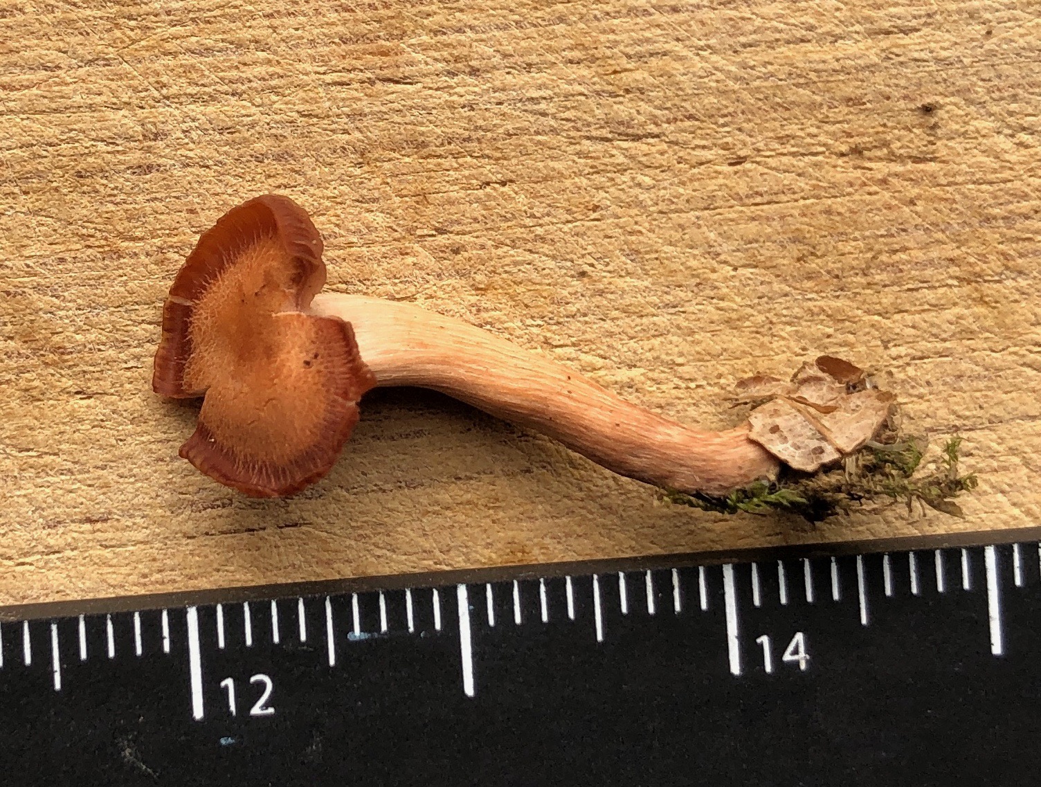 Mein Lieblingspilz des Tages ist dieser Winzling wegen seines Innenlebens. Er stand zwischen Fichten und Buchen.