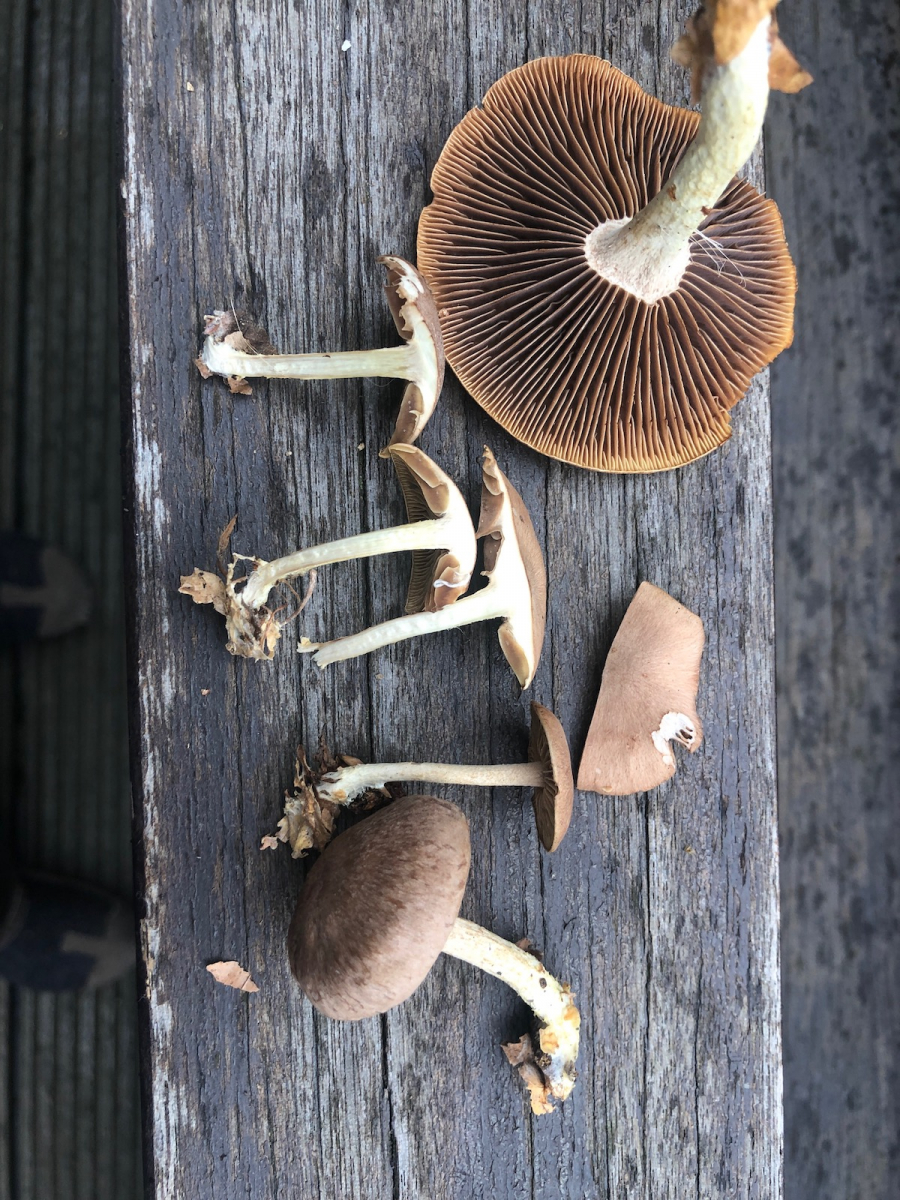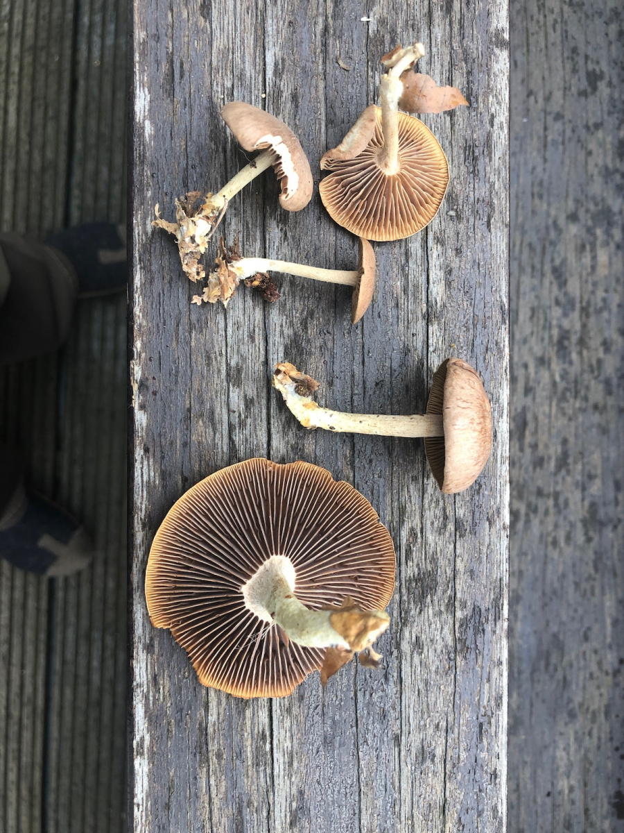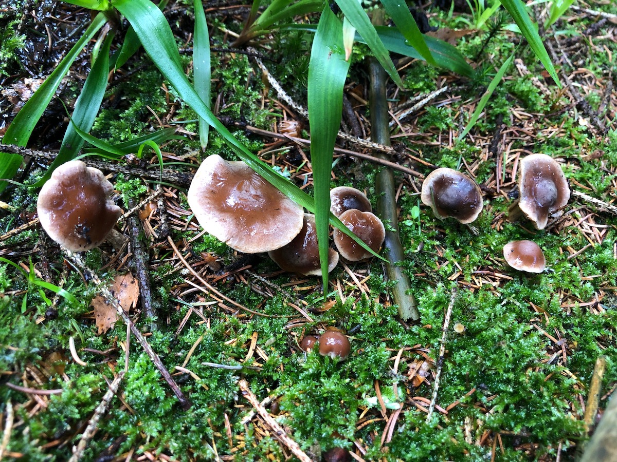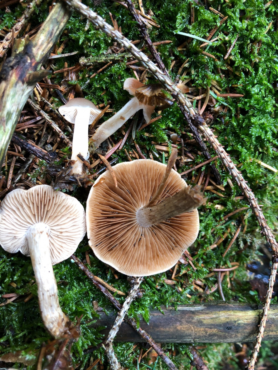 Zuerst ist da einmal diese stark hygrophanen kleinen braunen Unbekannten. Ich glaube Cortinareste zu erspähen und vermute einen Cortinarius. Demzufolge bin ich nicht weiter in die Bestimmung eingestiegen. Den bekomme ich sowieso nicht heraus, wenn es ein Schleierling ist. Denkt Ihr auch, es könnte einer sein? Braunes Sporenpulver, Geruch kann ich schlecht, Fichten 2-4 cm Hutdurchmesser.