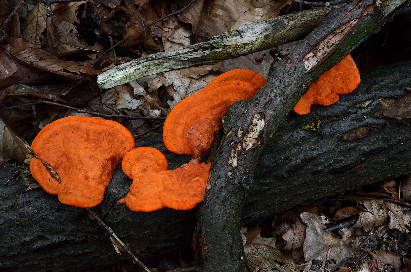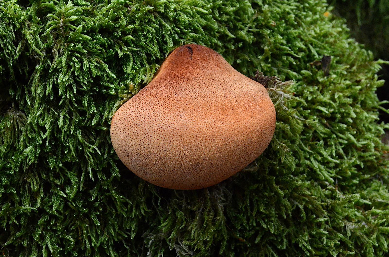 Auch farbenfroh: der Leberreischling in ganz jung. Auf Stubben.