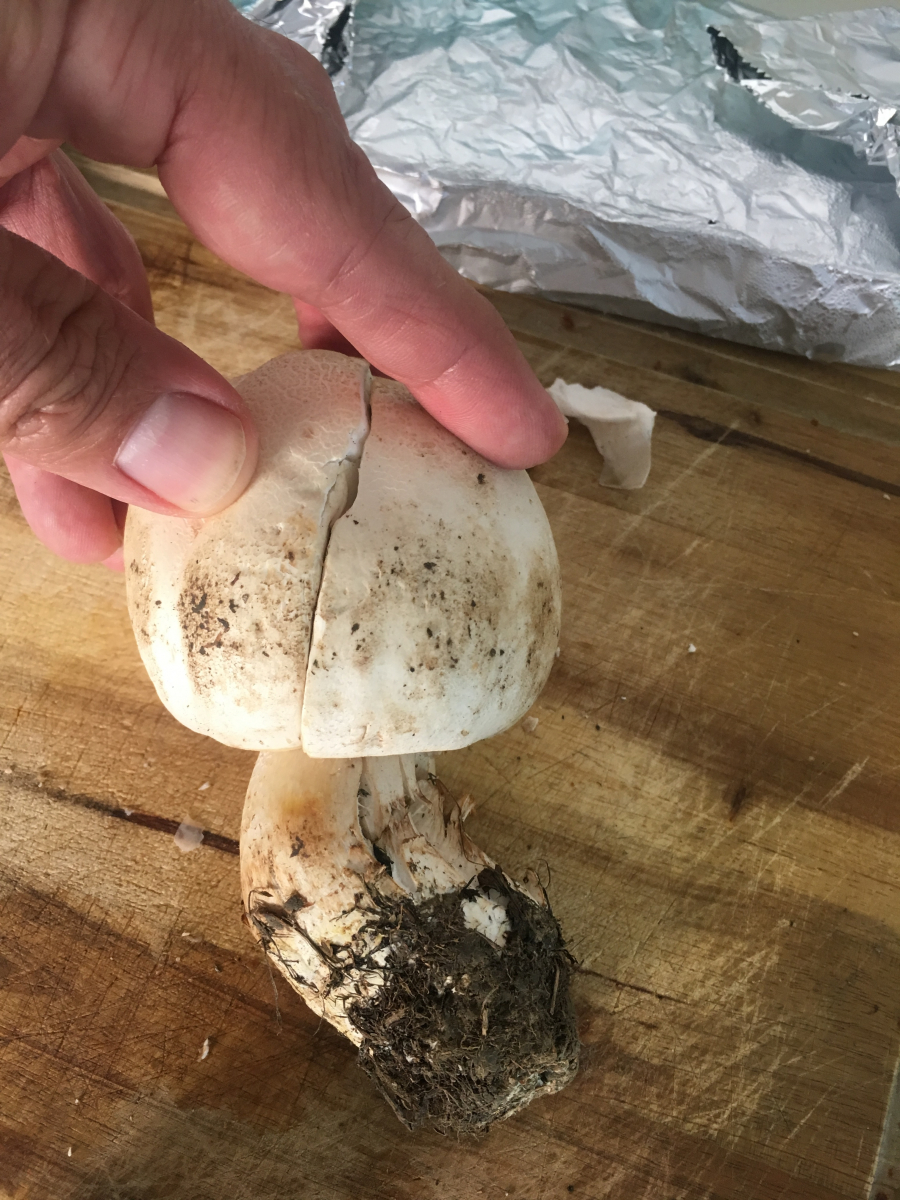 nach der gegebenen Beschreibung ist ein giftiger Karbolegerling sehr wahrscheinlich. Du kannst ja mal den Stiel mittig längs durchschneiden und uns die Schnittfläche inkl. Stielbasis zeigen.