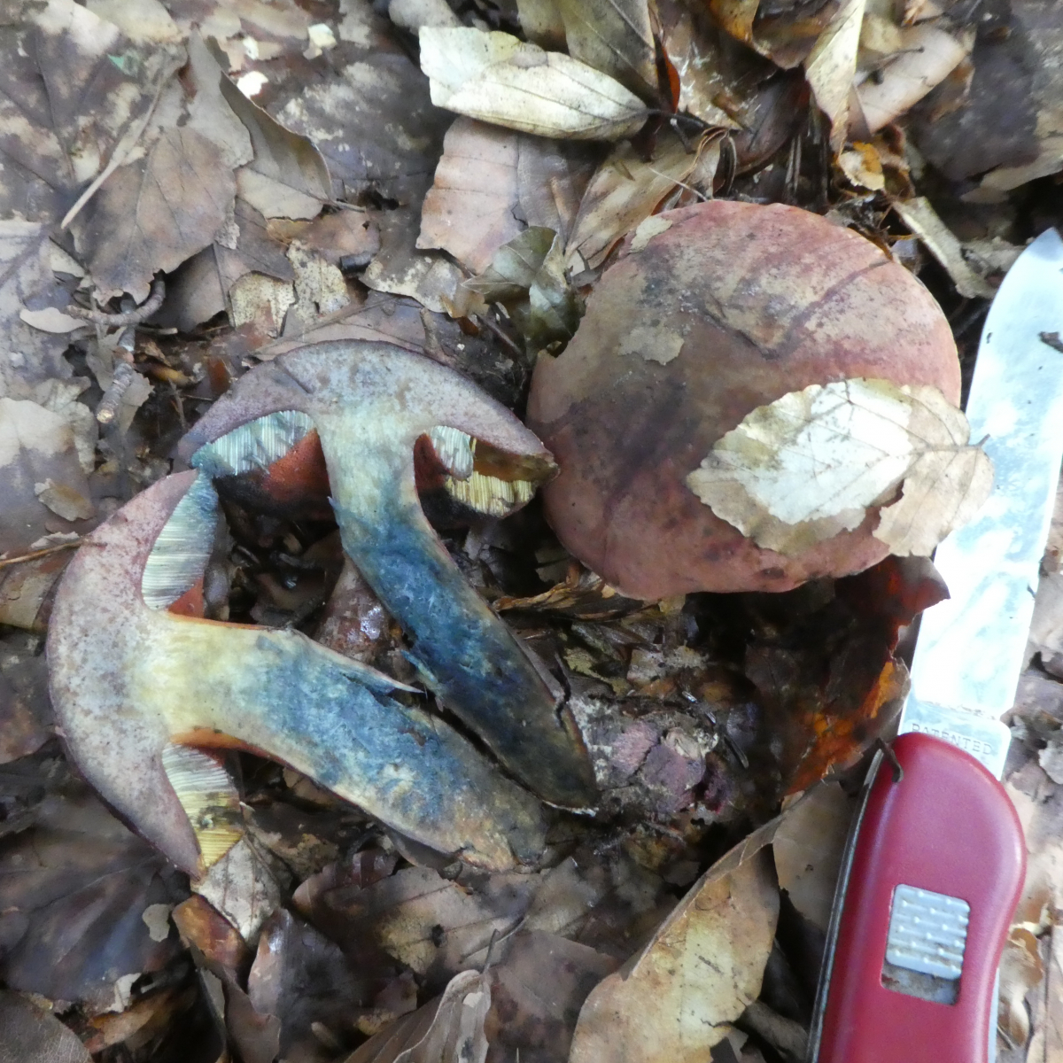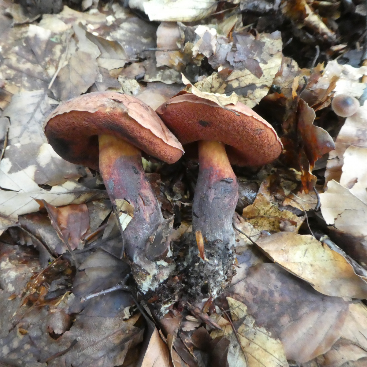 heute fand ich in einem kleinen Waldstück mehrere dieser Röhrlinge. Beim ersten Pilz dachte ich im ersten Augenblick trotz der anderen Huthautfarbe an einen Netzstieligen Hexenröhrling, auf den zweiten Blick dann nicht mehr. Bei den weiteren Pilzen die in unmittelbarer Nähe wuchsen dann erst Recht nicht mehr, zumal der Stiel viel dünner und ganz anders war. Bitte, welche Pilze habe ich denn da gefunden?