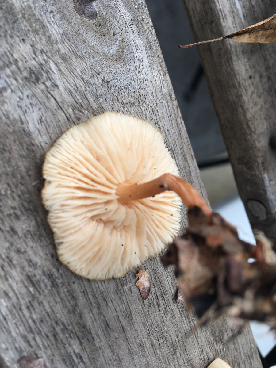 Pilz 1: Sieht schon sehr nach einem der Waldfreundrüblinge (Gymnopus dryophilus s.l.) aus.