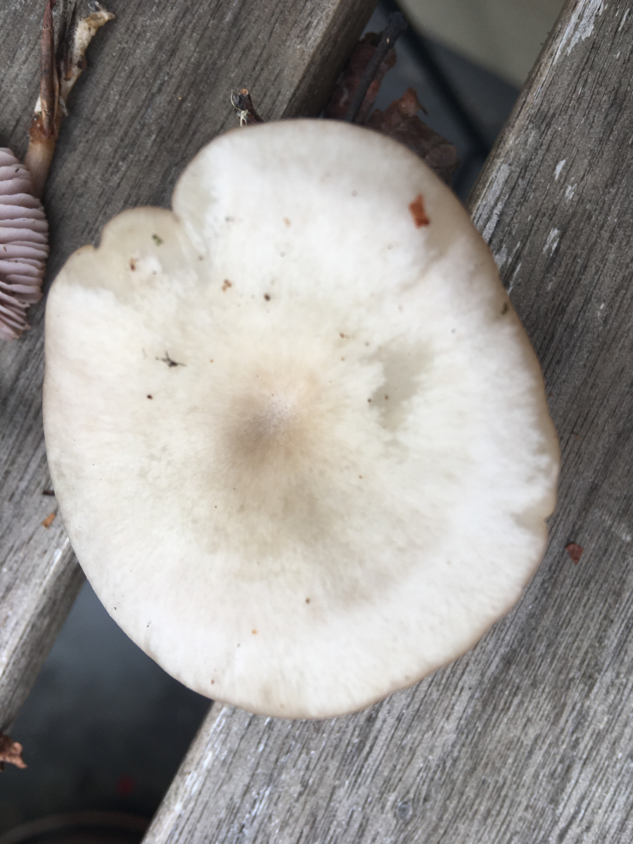 Solche Farbverläufe der Hutoberfläche bei zugleich dicken, großen Fruchtkörpern können ein Hinweis auf Clitopilus cystidiatus sein - aber es ist wohl so, daß normale C. prunulus das auch können (hatte ich jedenfalls schon so, wo sich mikroskopisch null Hinweise auf cystidiatus fanden). Aber wie gesagt: Die trennung ist eh sehr wackelig, auch wenn man die mikroskopischen merkmale mit berücksichtigt.