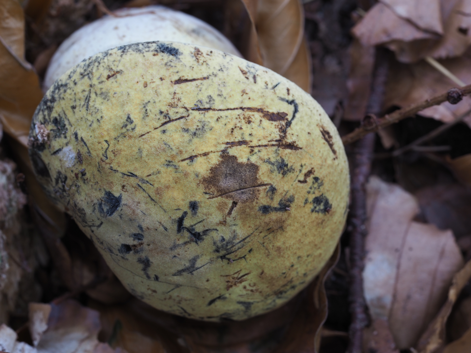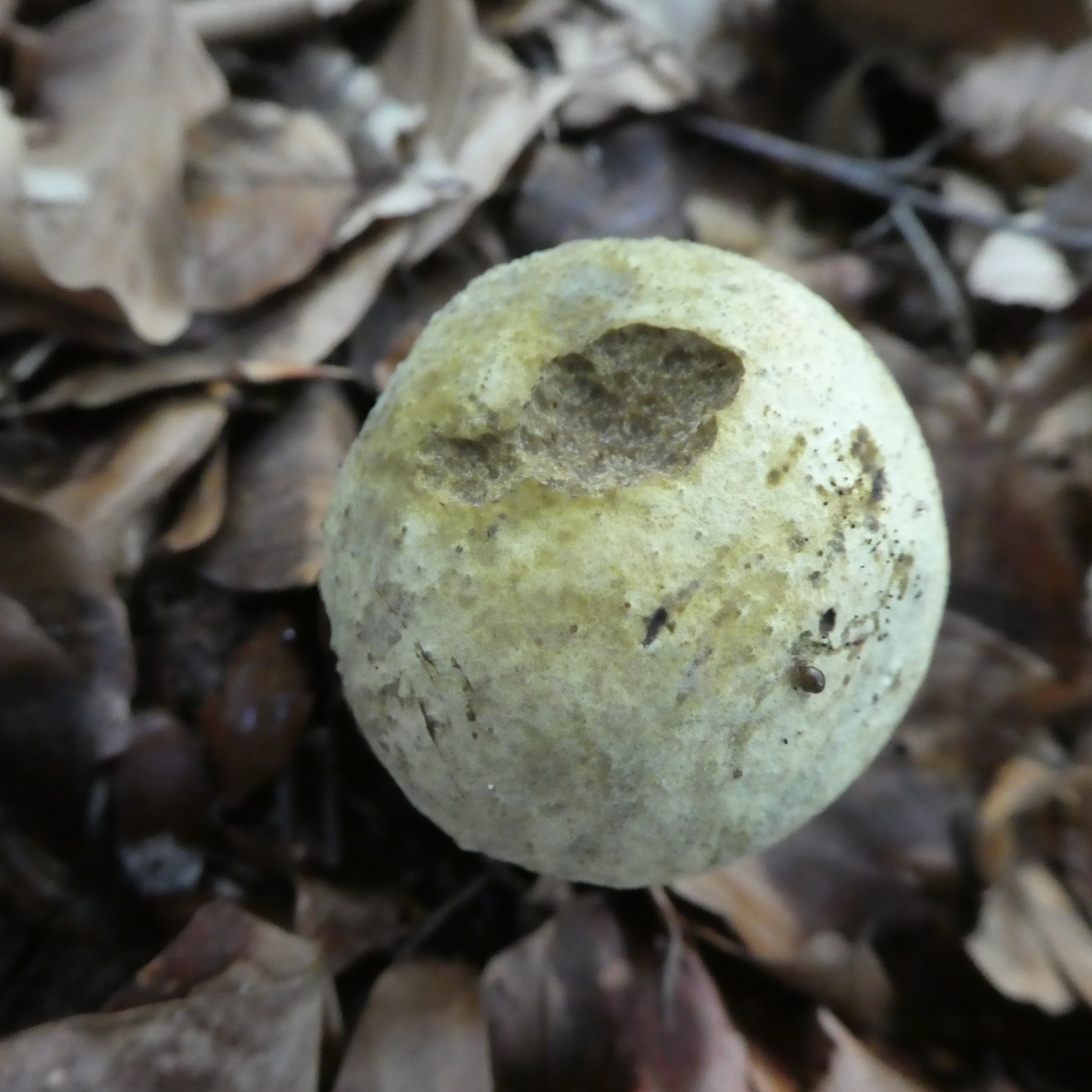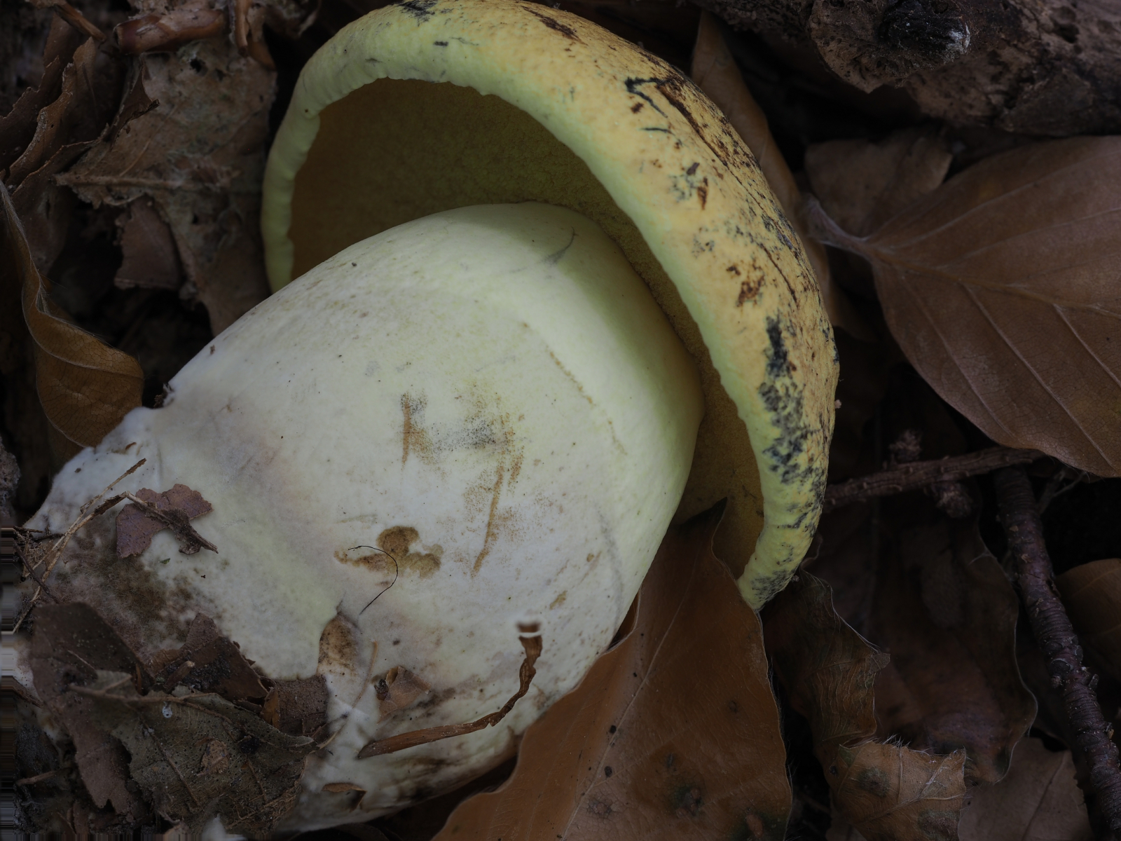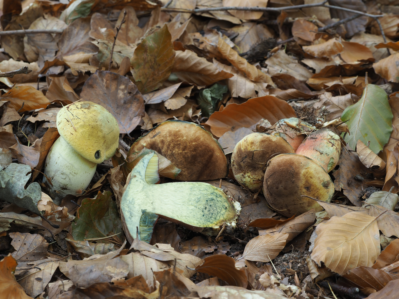 Funddaten: 22.08.2019, Altmühltal, eigentlich Mischwald am Fundort aber ein sehr großes Stück reiner Rotbuchenwald. Höhe des größeren Pilzes 7,5 cm, Hutdurchmesser 4 cm, sofort aber nicht sehr intensiv und nur in der Mitte des Pilzes blauend