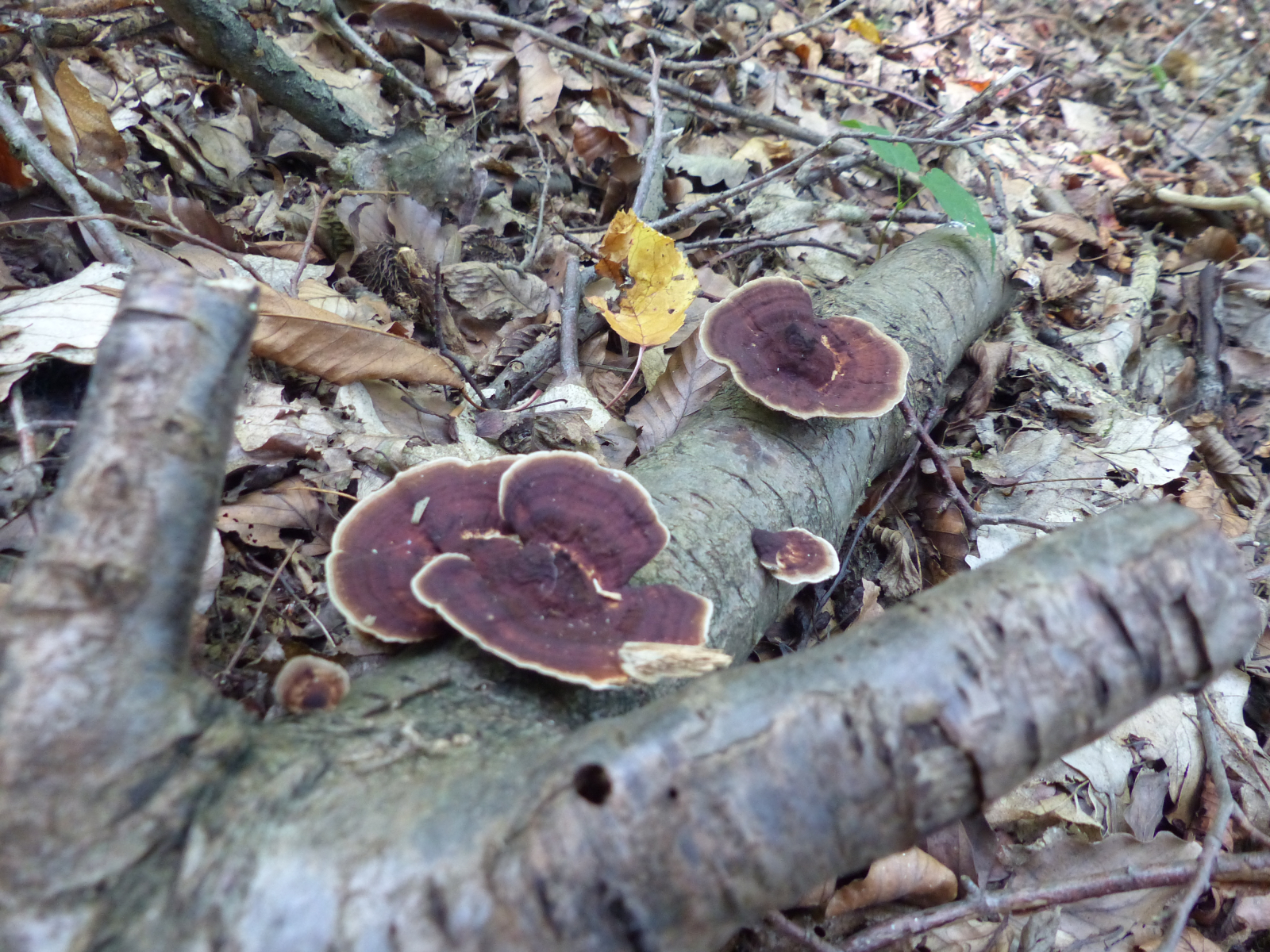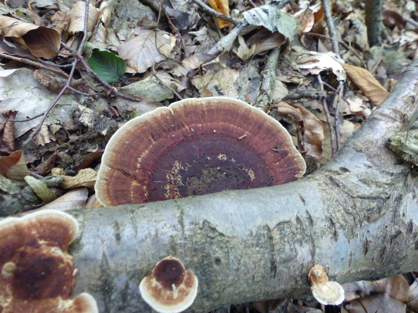 Diese "weinroten Birkenblättlinge" sind Dreifarbige Blättertrameten (Daedaleopsis tricolor).