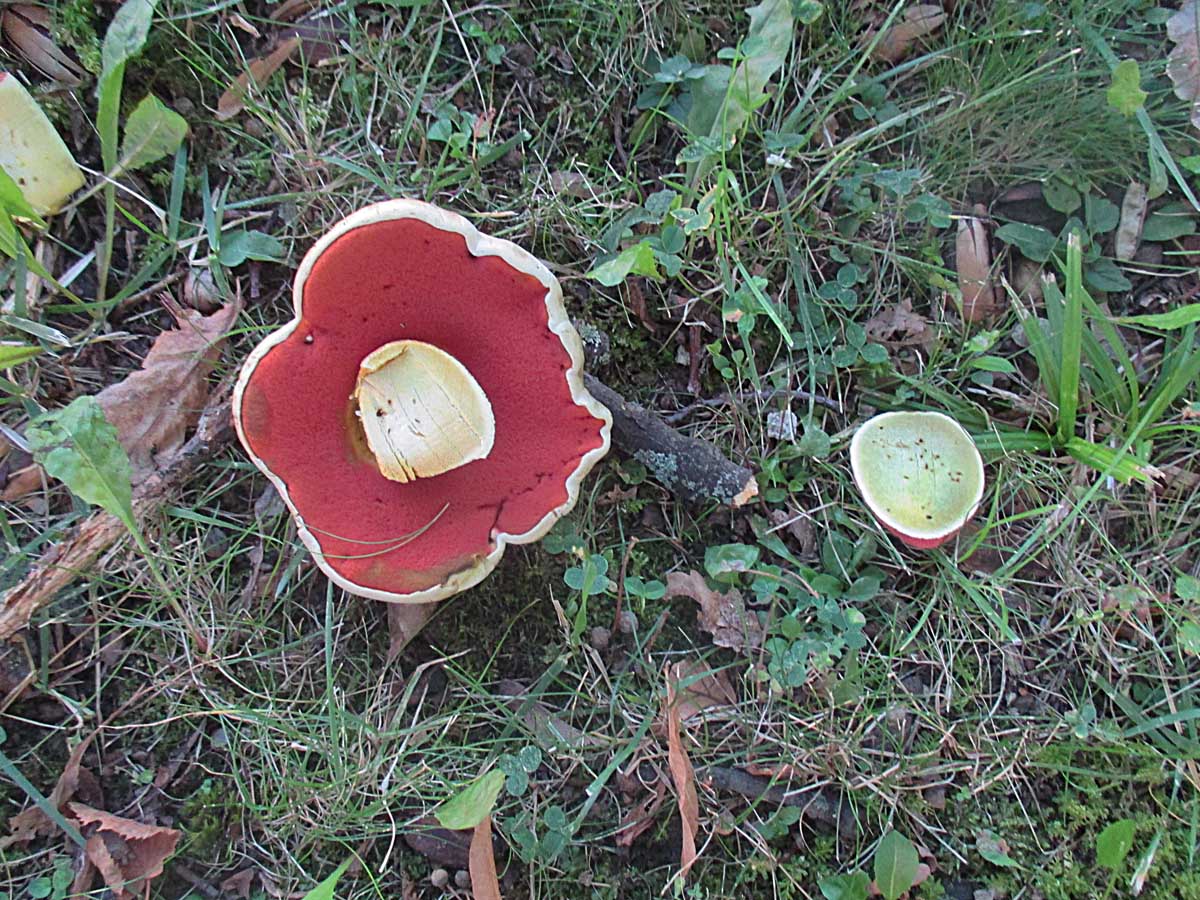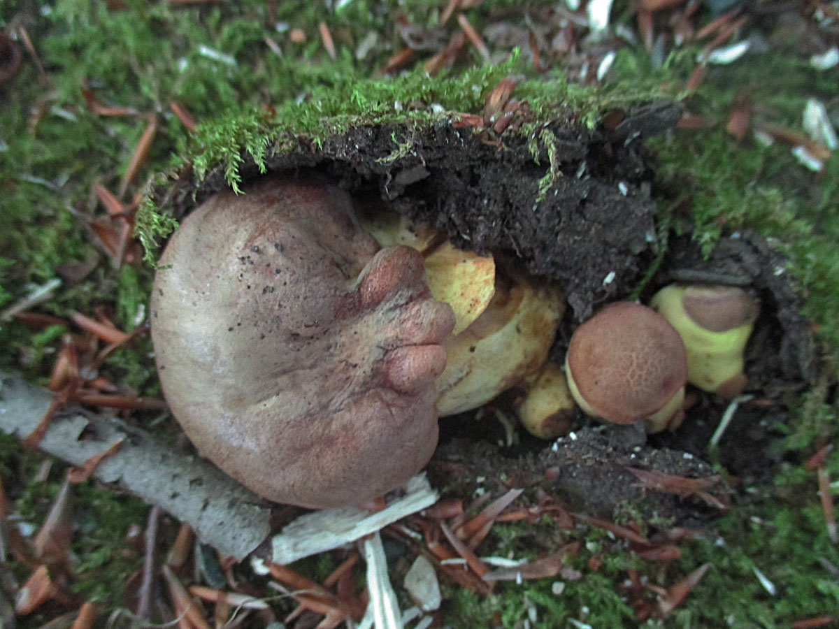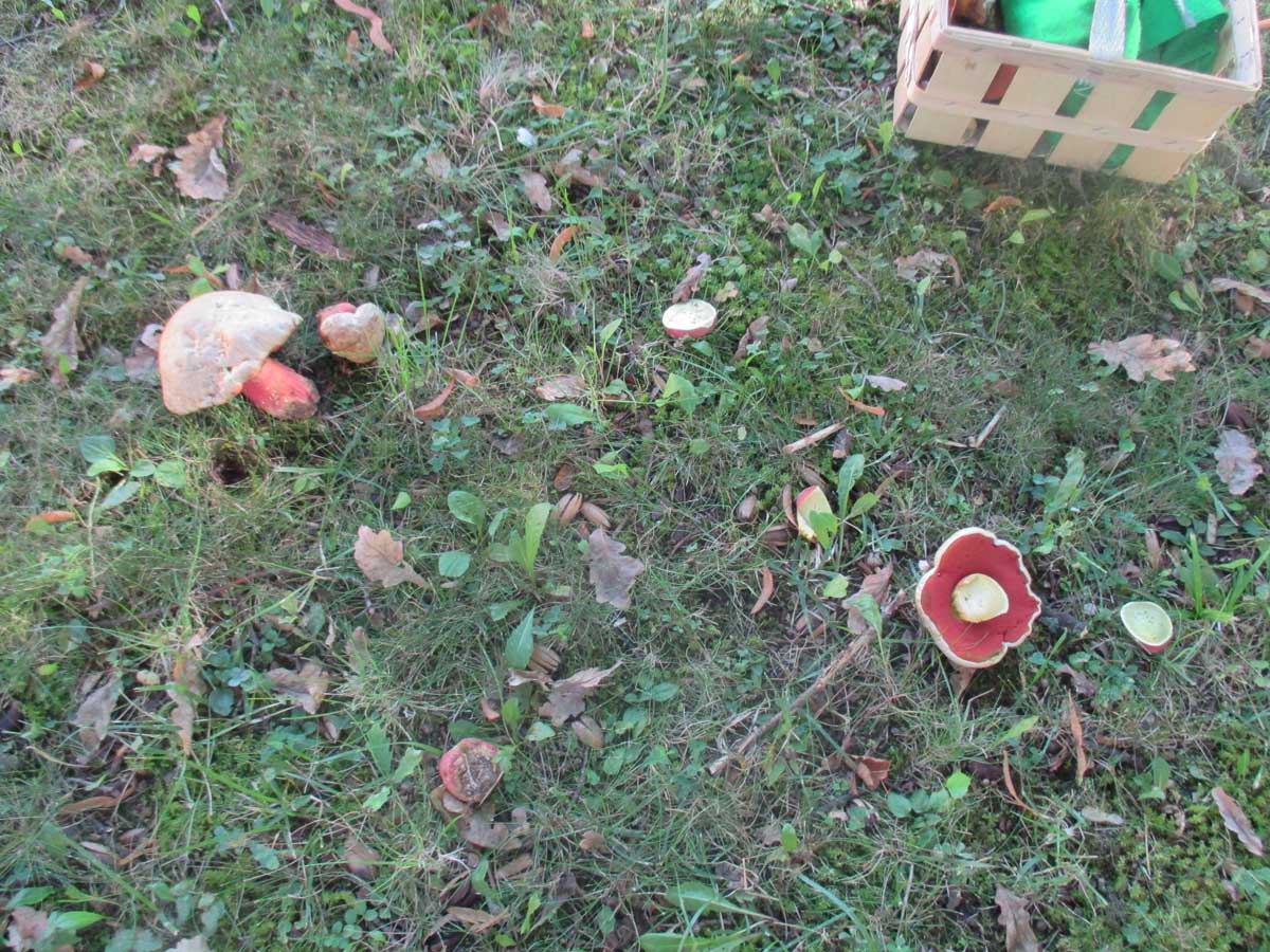 einige wenige Netzstielige Hexenröhrlinge (Suillellus luridus)