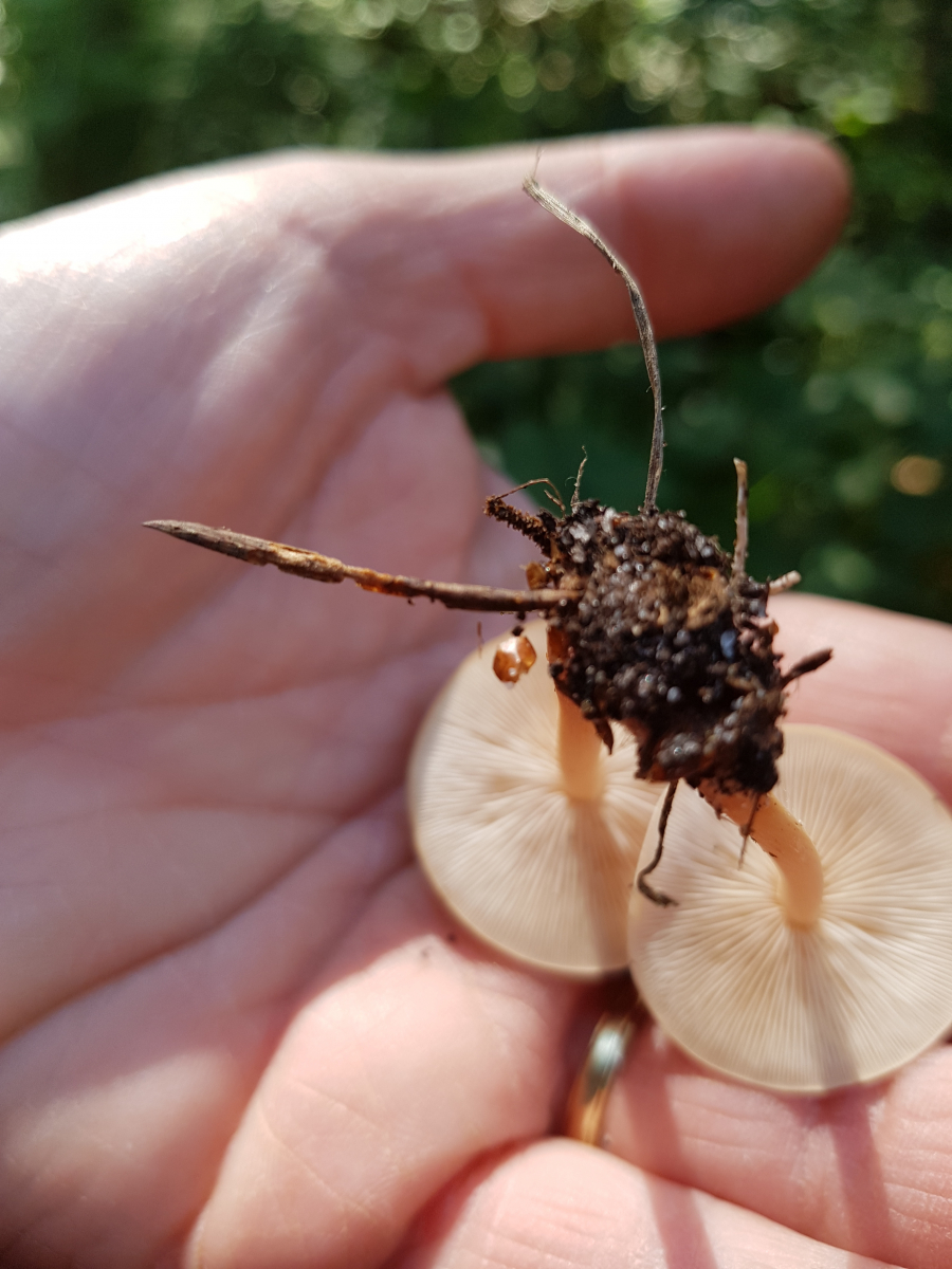 Bei mir zB scheint das erste Bild aus der Reihe zu fallen und zu den Weichritterlingen (Melanoleuca spec., die mit dem weißen & amyloiden Sporenpulver) weiter unten zu führen. Die anderen außer dem Weichritterling und dem Kartoffelbovist scheinen mir Waldfreundrüblinge (Gymnopus dryophilus s.l.) zu sein.