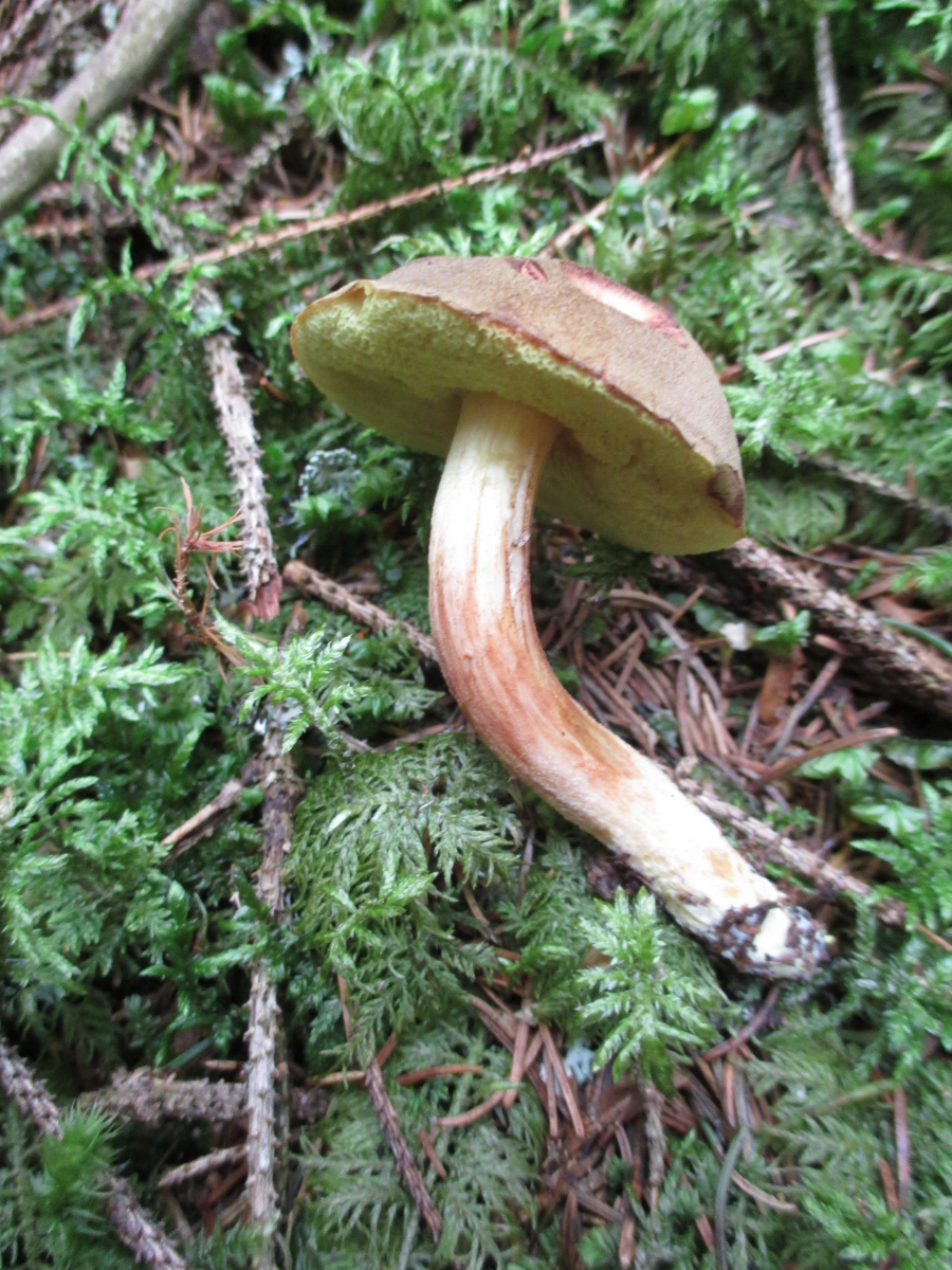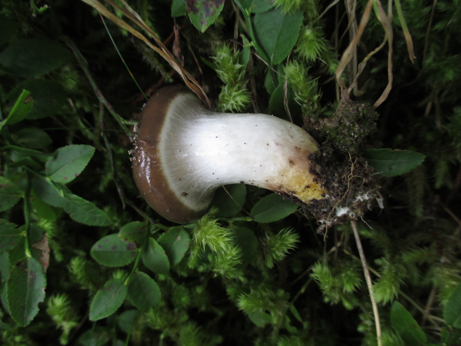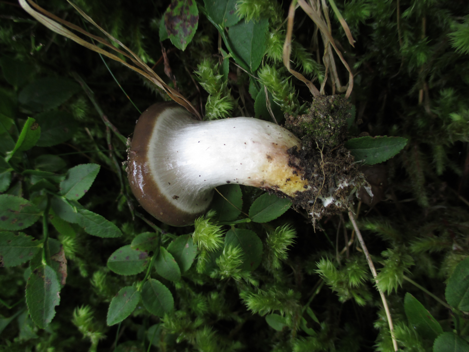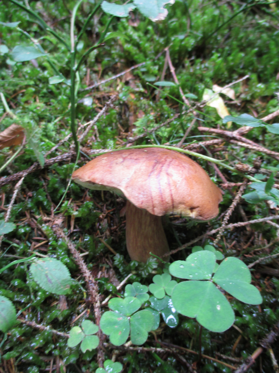 Gleich am Anfang an einem Wegrand neben Cantharellus amethysteus (nicht fotografiert) ein Erstfund, das Kuhmaul, Gomphidius glutinosus!
