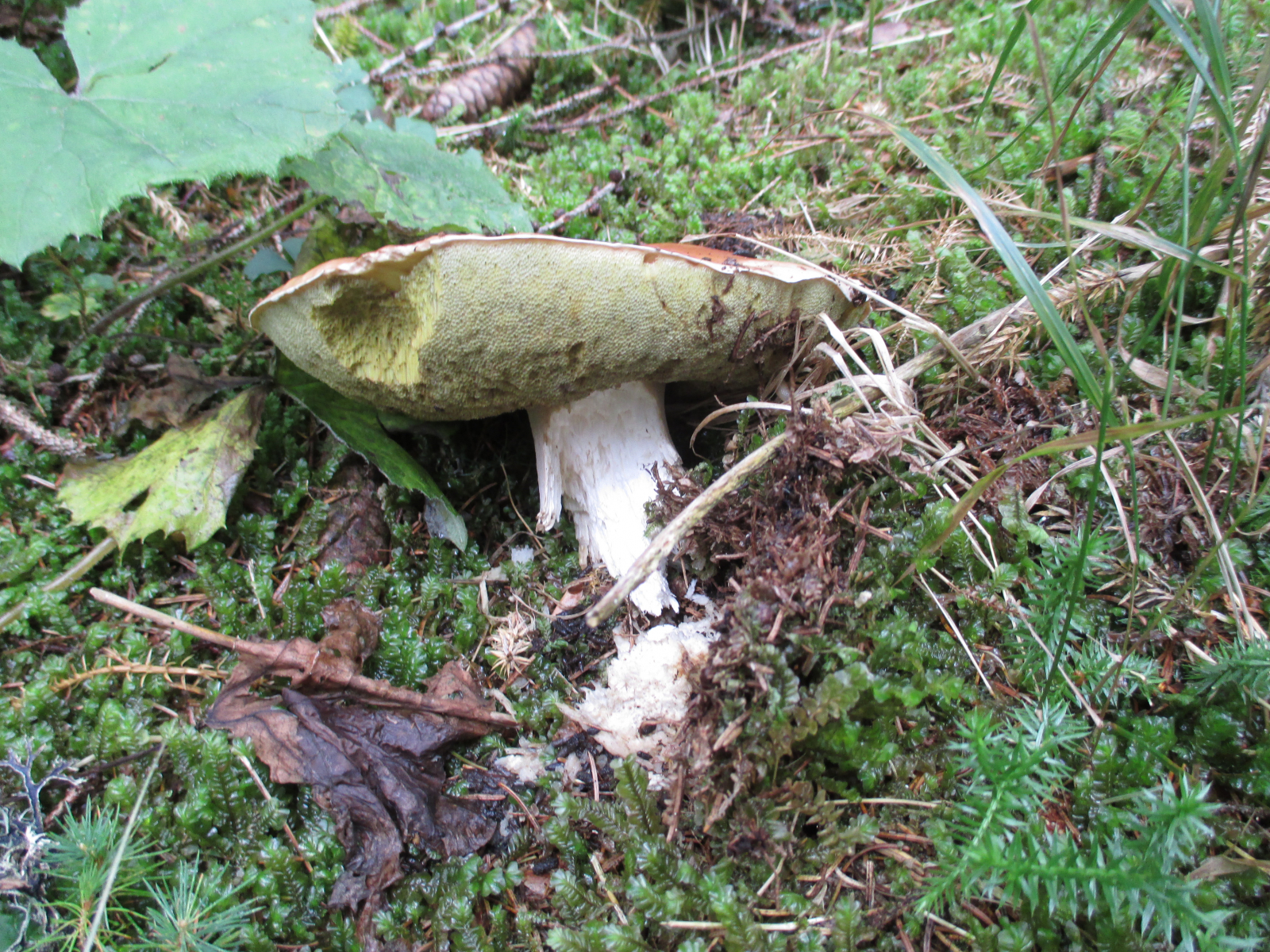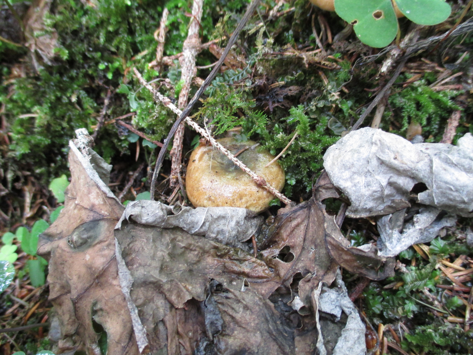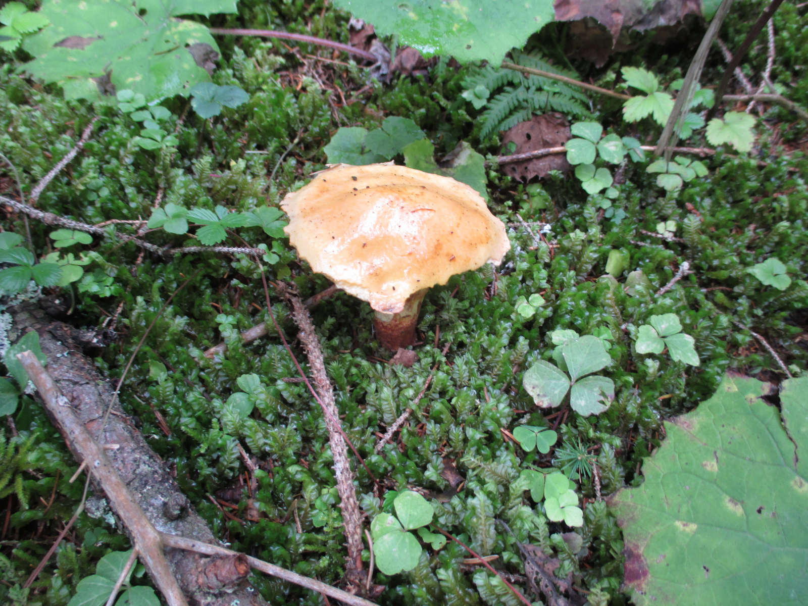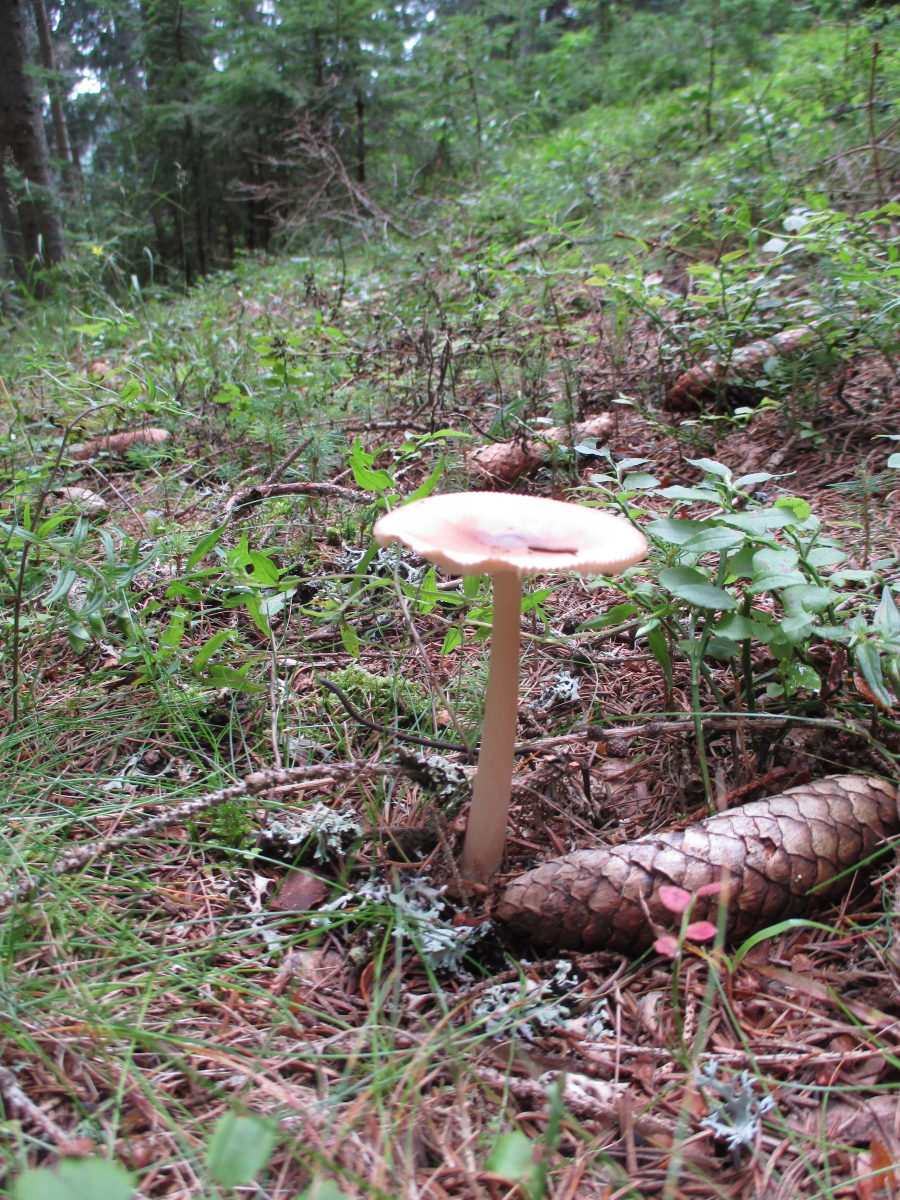 Gleich am Anfang an einem Wegrand neben Cantharellus amethysteus (nicht fotografiert) ein Erstfund, das Kuhmaul, Gomphidius glutinosus!