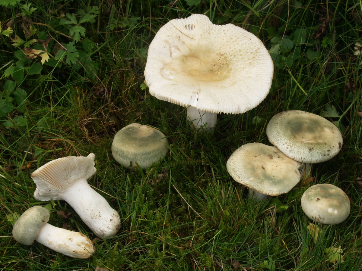 Die nächste Kollektion, sollte selbst den letzten Zweifler davon überzeugen, dass man Täublinge nicht nur nach Farbe bestimmen kann. Zwar waren mir durch häufige Funde fast alle abgebildeten Farbtöne bekannt, aber noch nie gleichzeitig an einem Fundort. Ja auch das blassgelbe Exemplar links, hatte wie alle Heringstäublinge eine grüne Eisensulfatreaktion und war kein übersehener "Pfirsischtäubling" ![]()